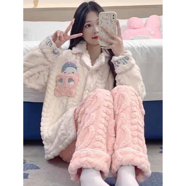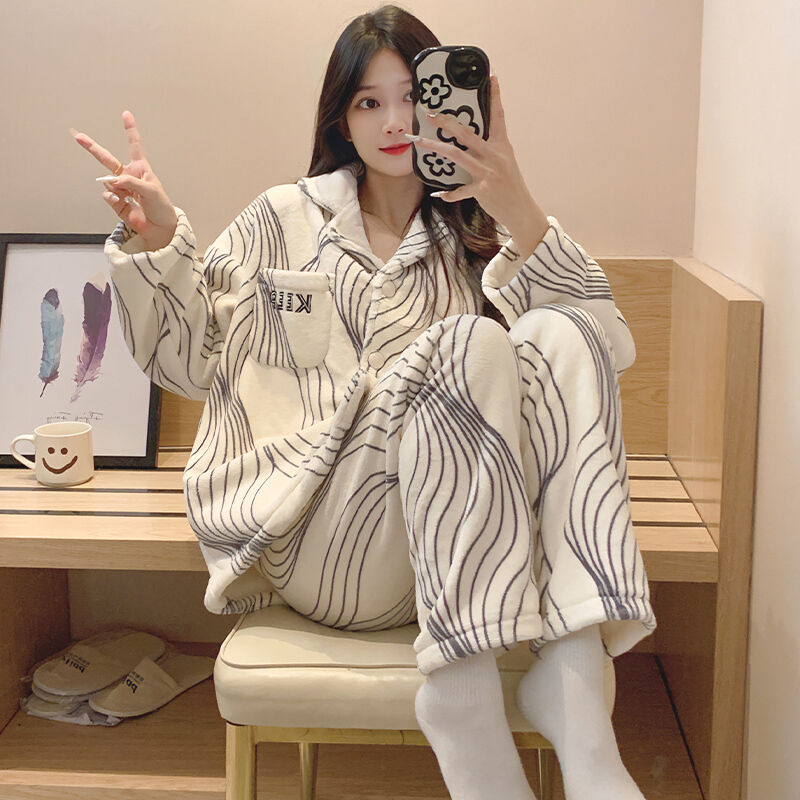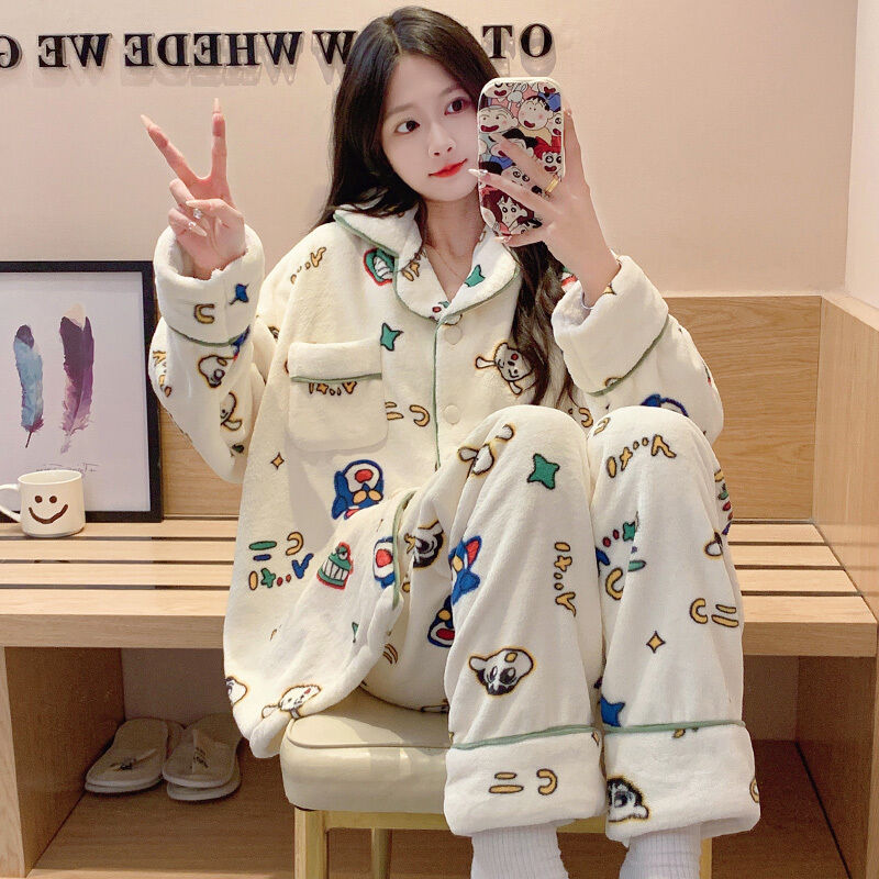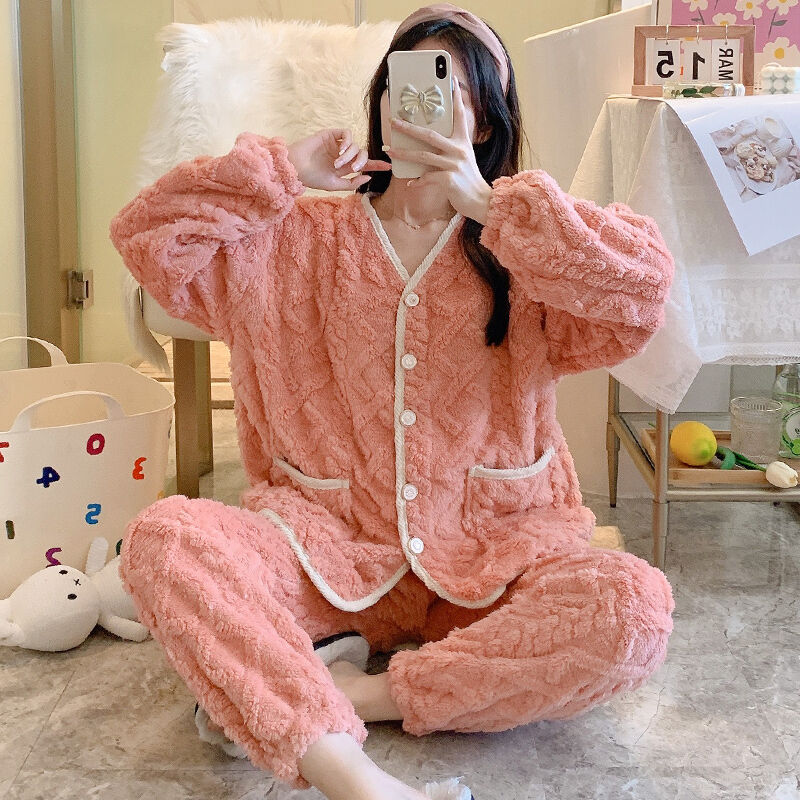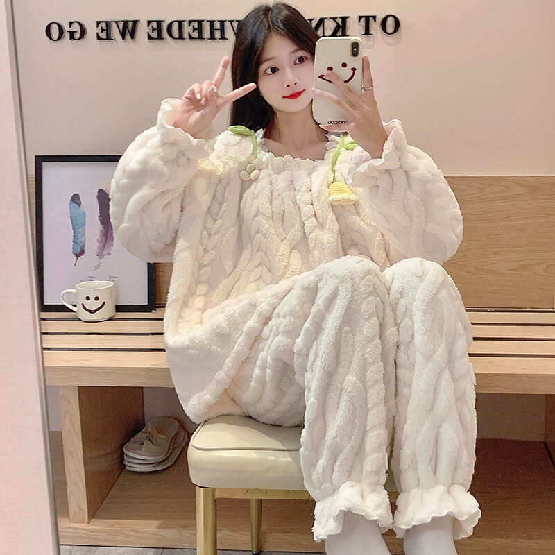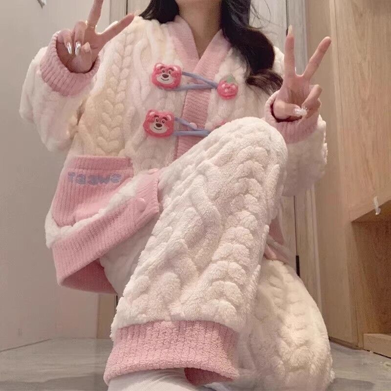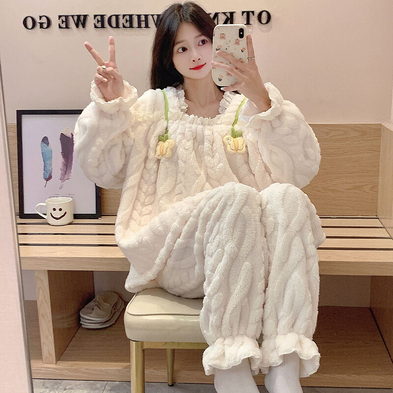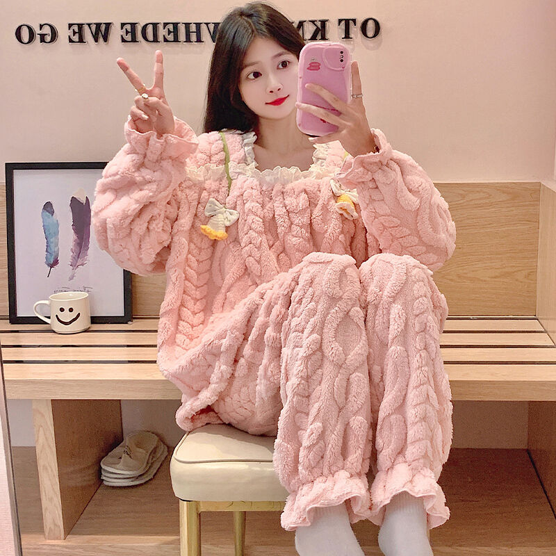 珊瑚絨睡衣女冬季長袖2025年新款法蘭絨加厚保暖春秋天家居服套裝