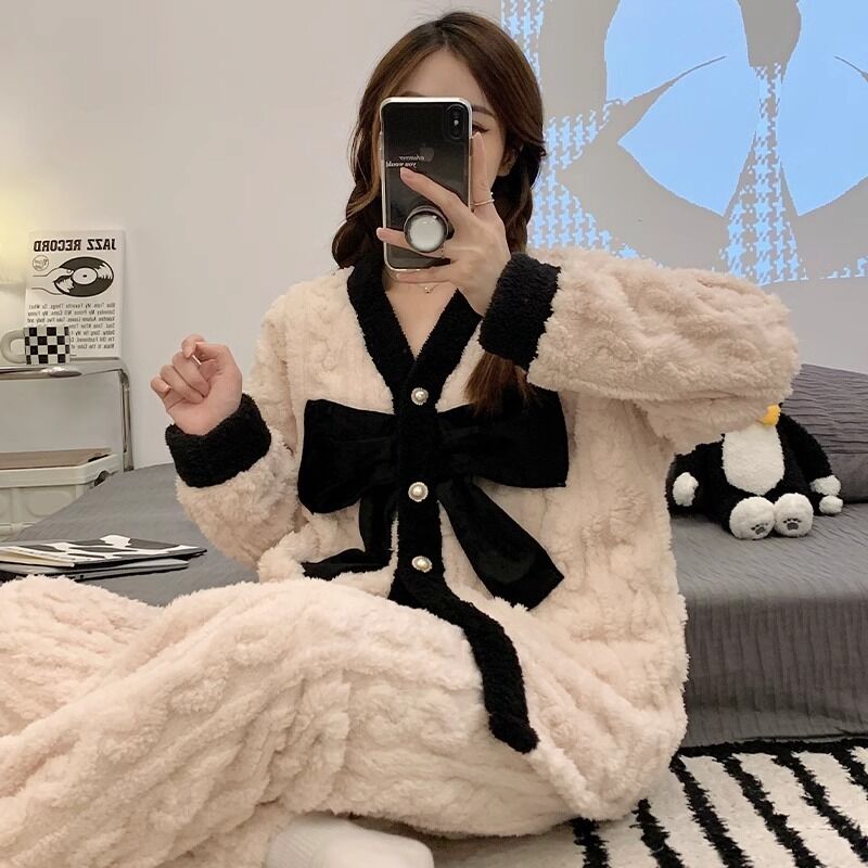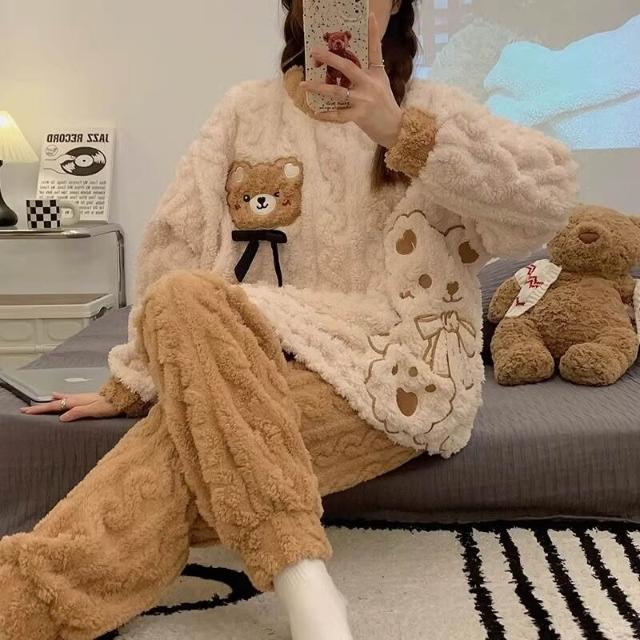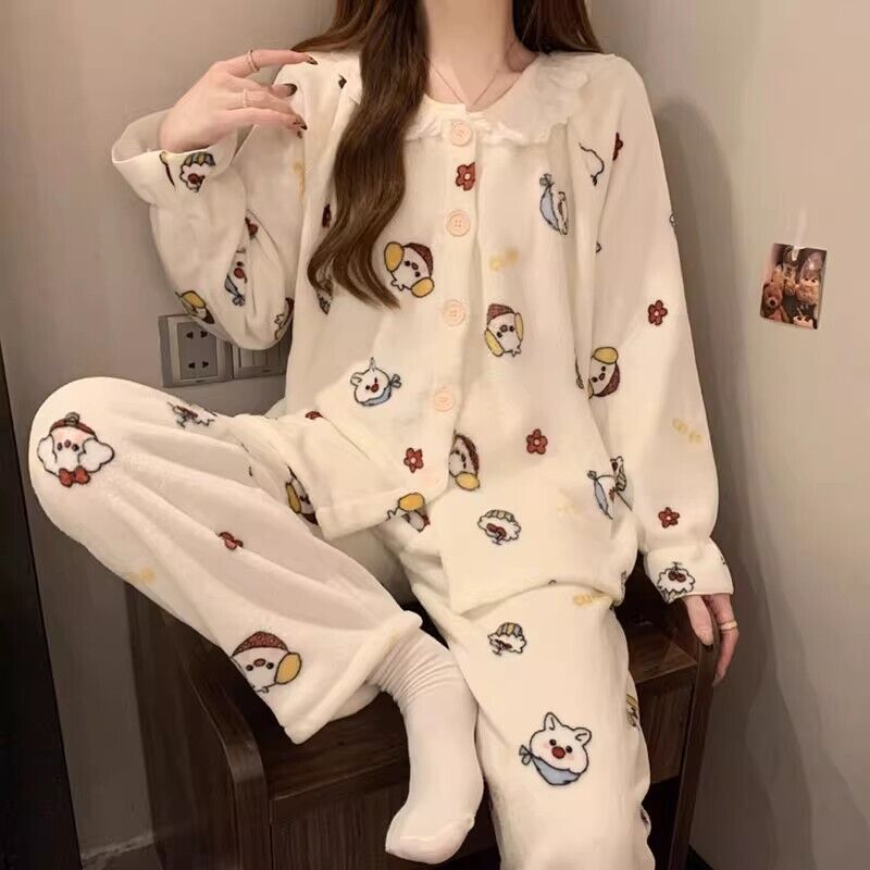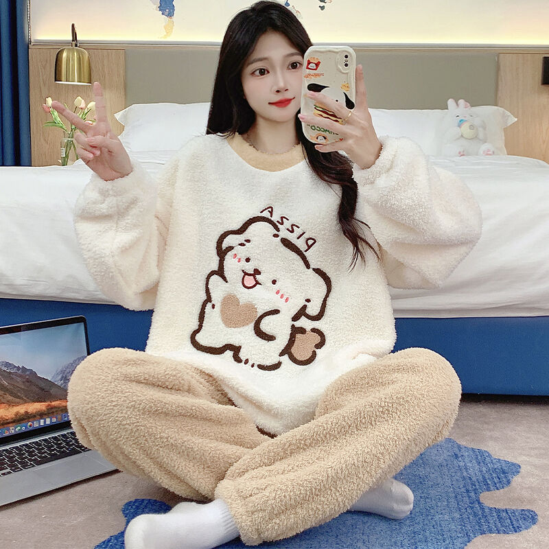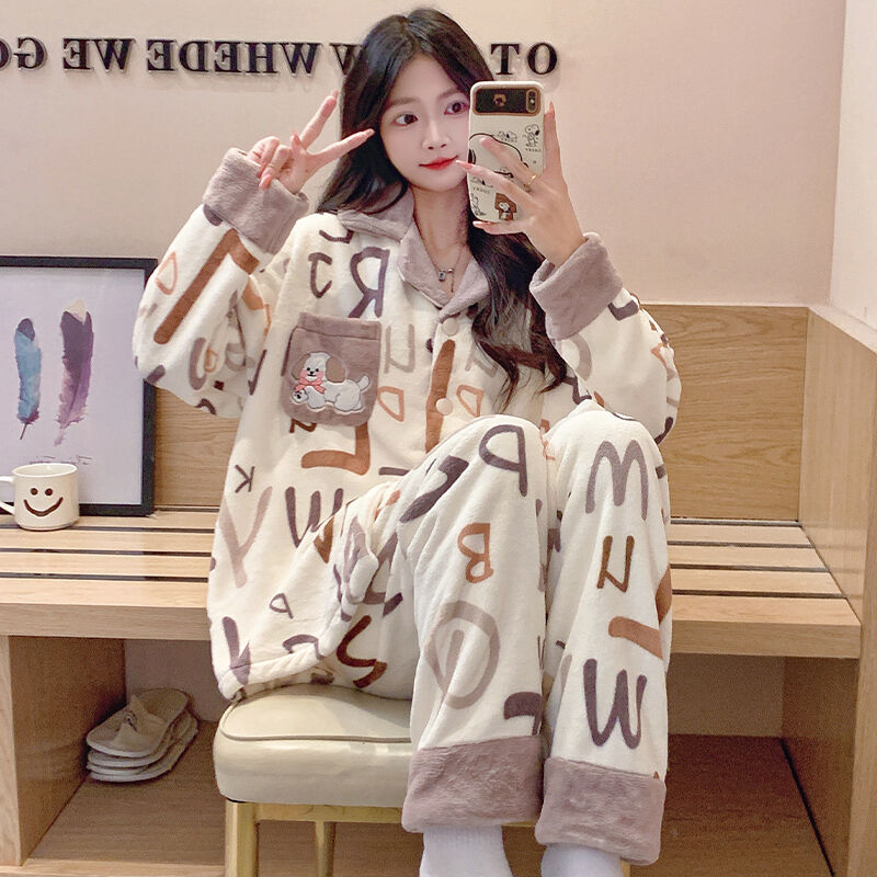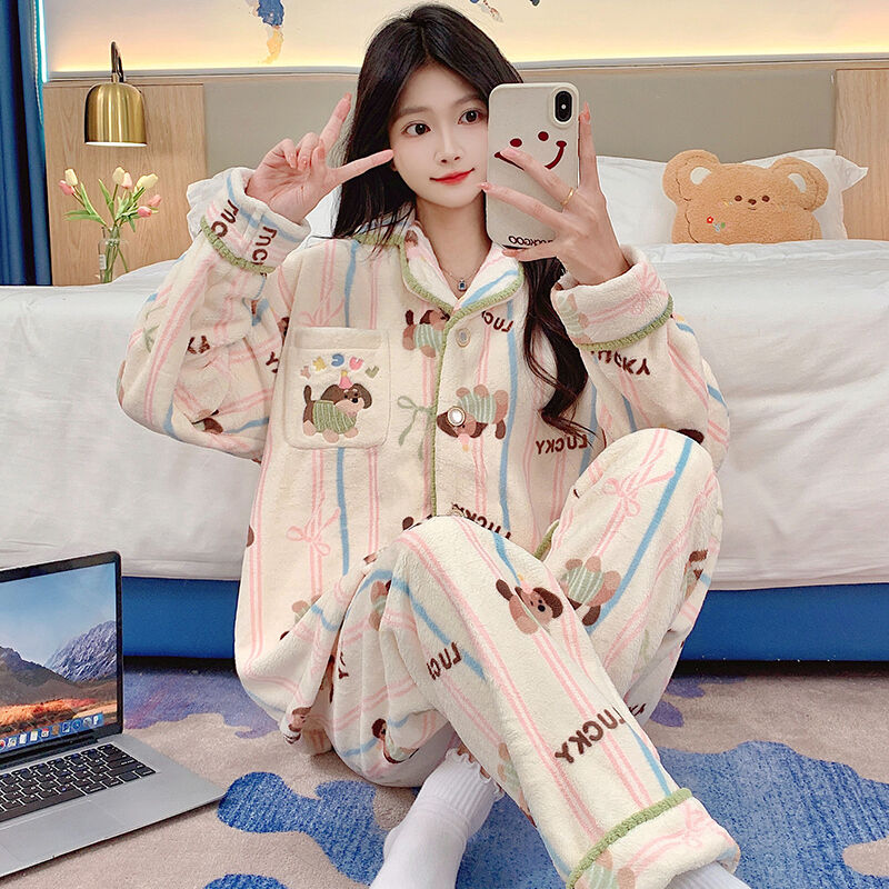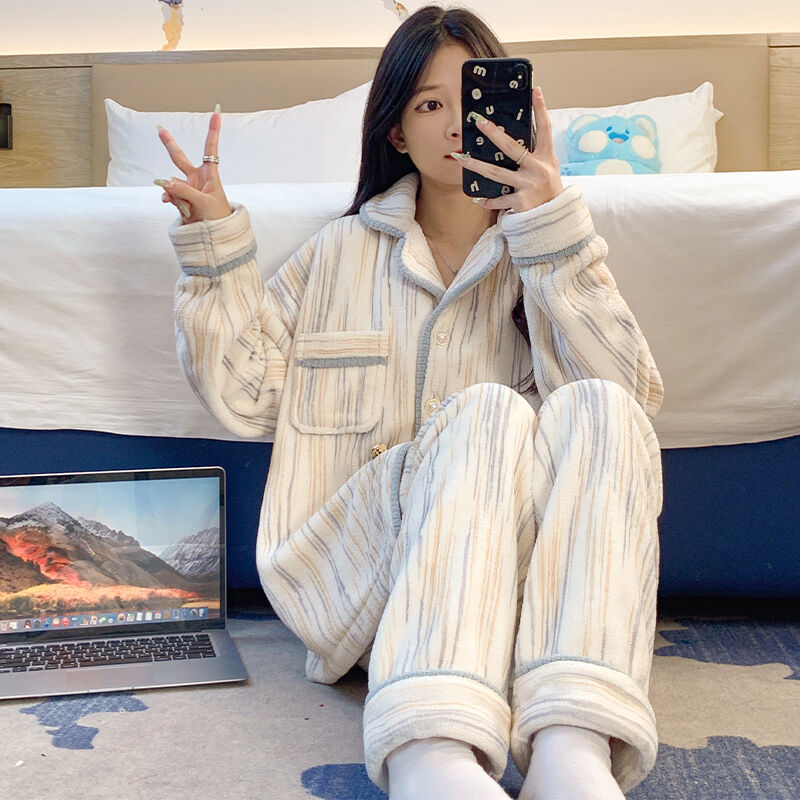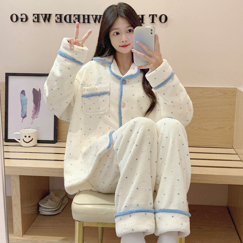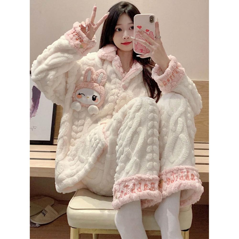 珊瑚絨睡衣女冬季長袖2025年新款法蘭絨加厚保暖春秋天家居服套裝