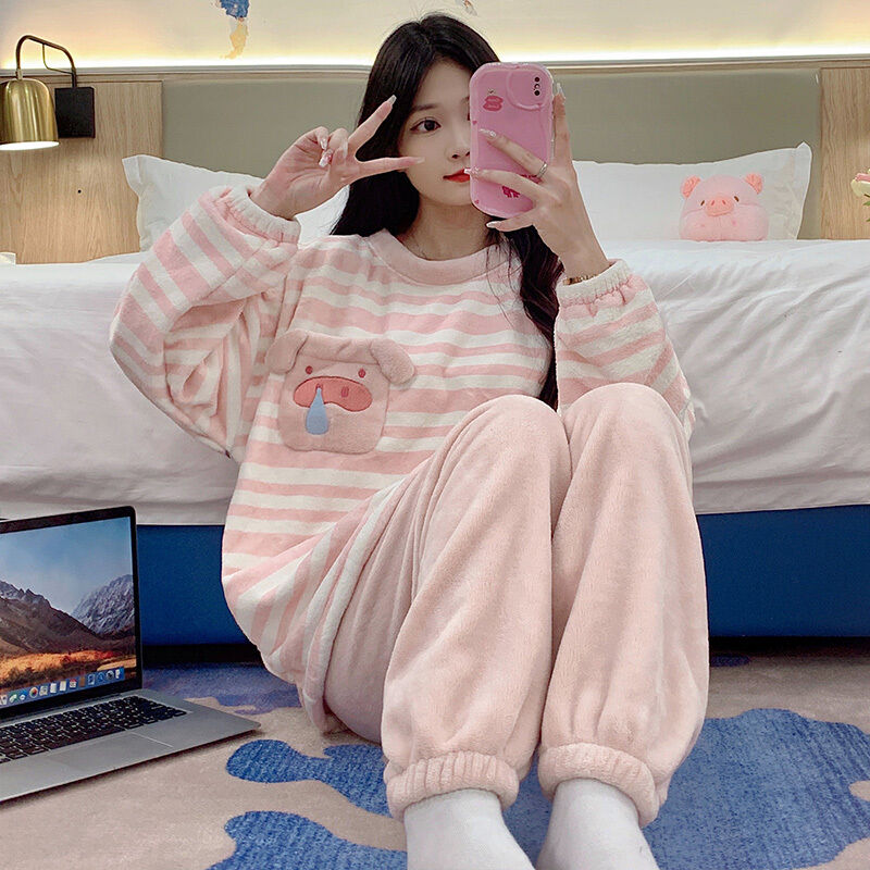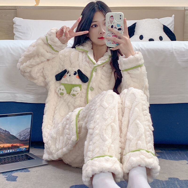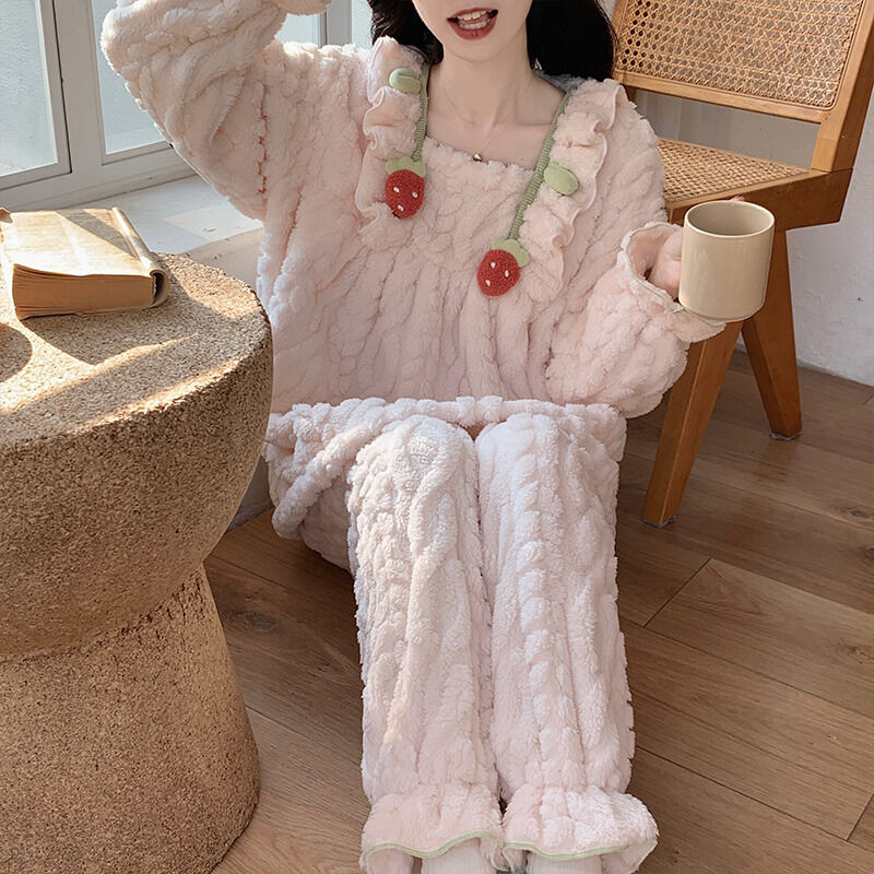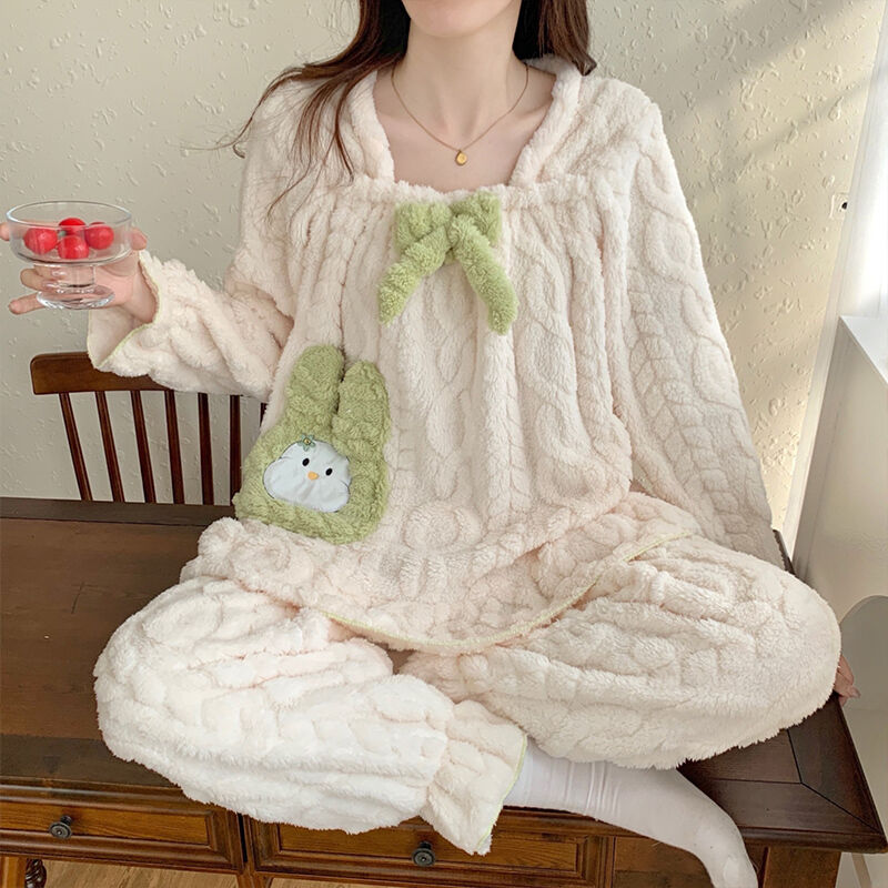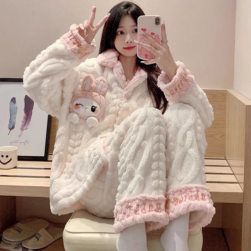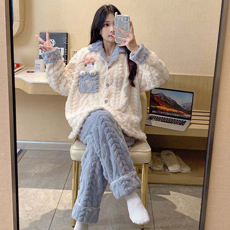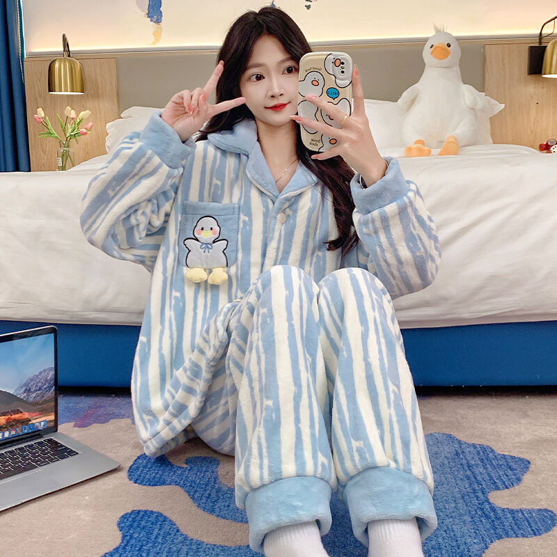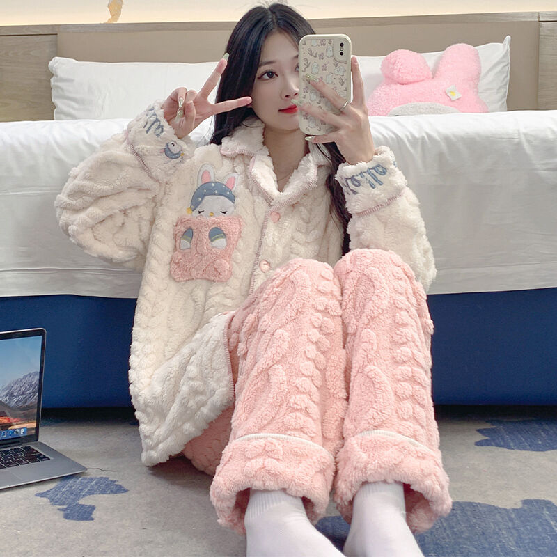 珊瑚絨睡衣女冬季長袖2025年新款法蘭絨加厚保暖春秋天家居服套裝