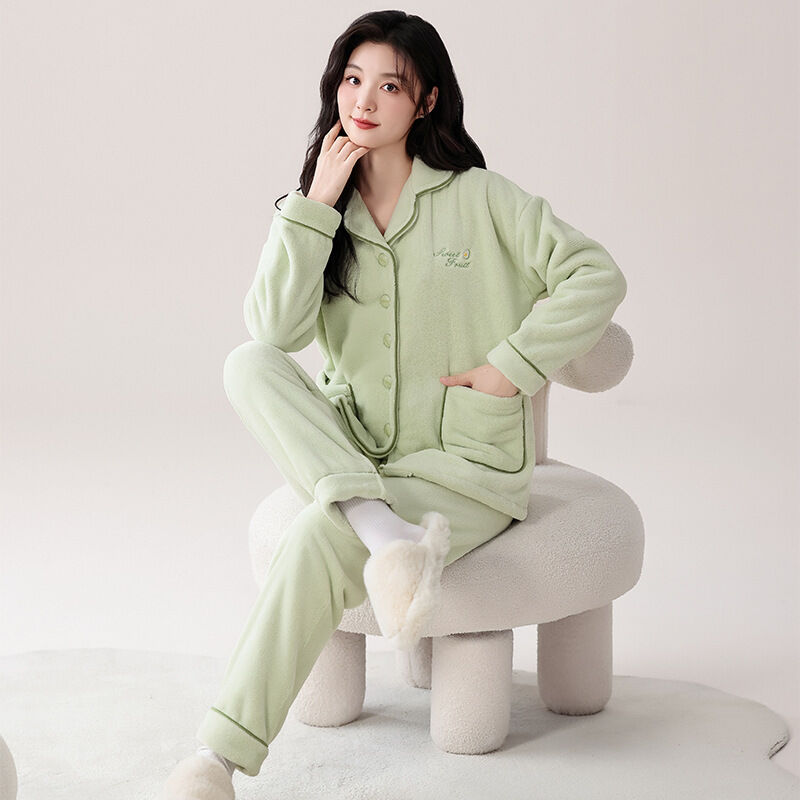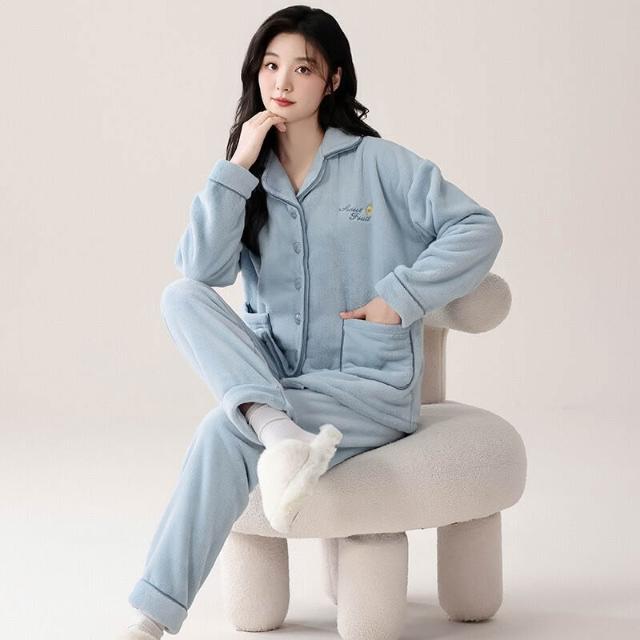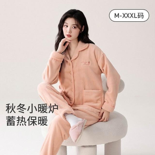 2025新款珊瑚絨睡衣女秋冬季加絨保暖法蘭絨可外穿女士家居服套裝