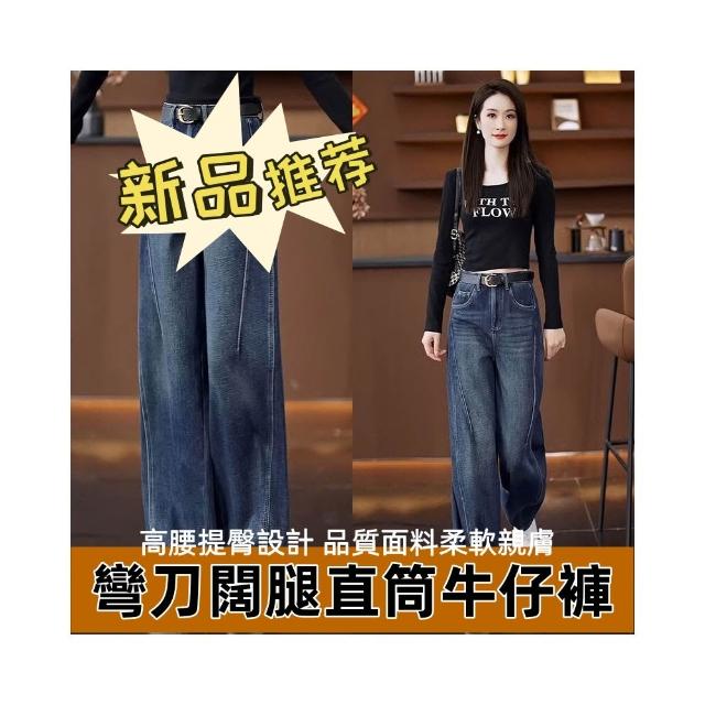 春秋高腰彎刀褲女 新款長褲顯瘦褲子 牛仔闊腿褲 寬松慵懶風香蕉褲冬