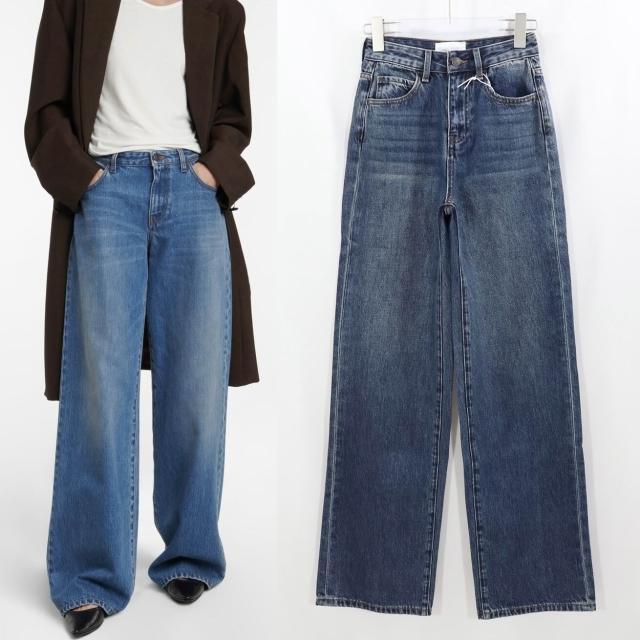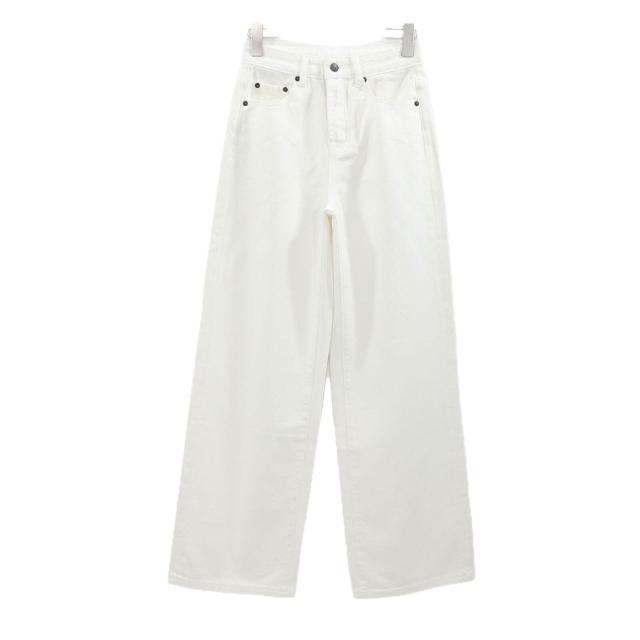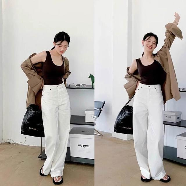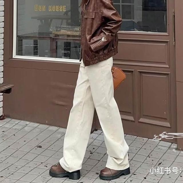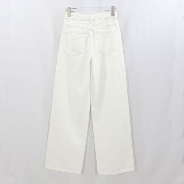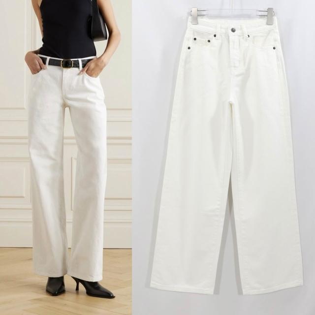 南油小眾row新款白色直筒牛仔褲女簡約設計感高腰顯瘦長褲女