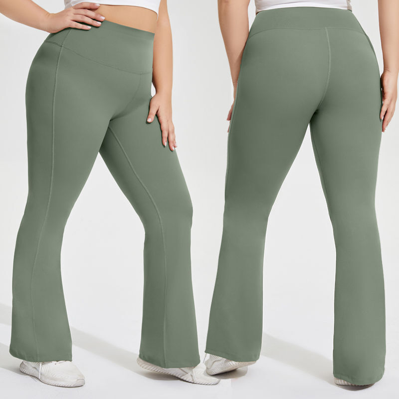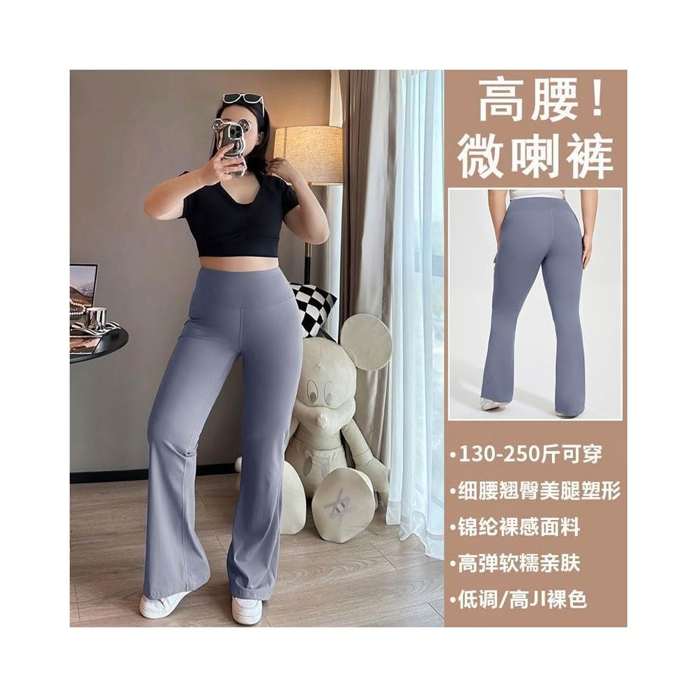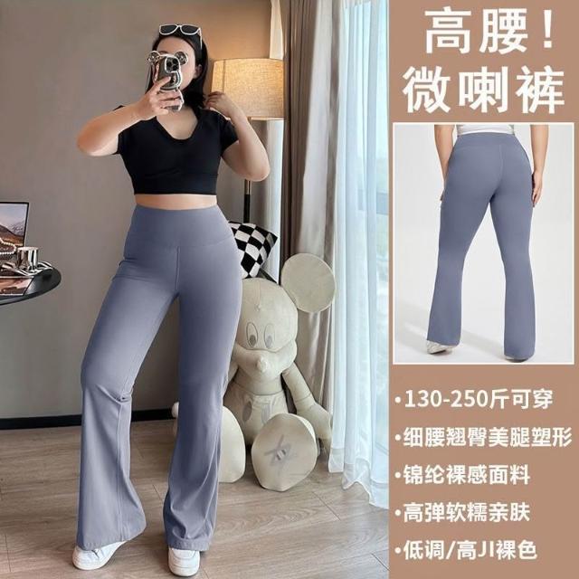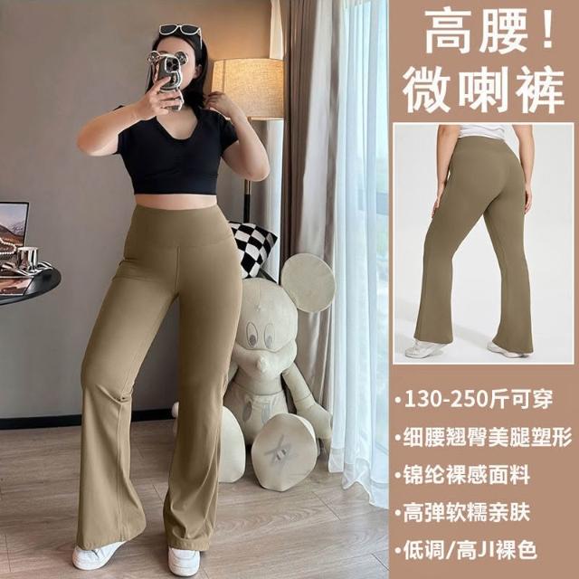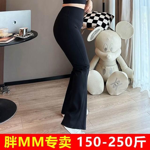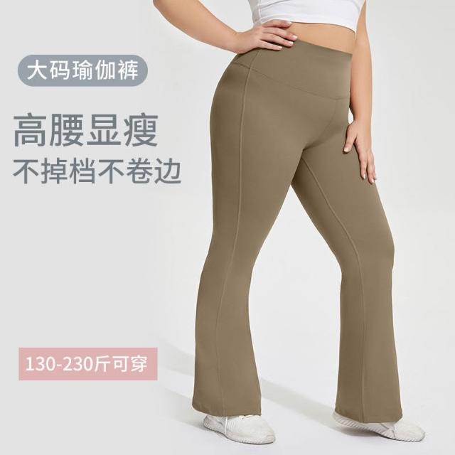 大碼瑜伽褲女新款微喇彈力提臀跑步健身運動長褲加大瑜伽服喇叭褲