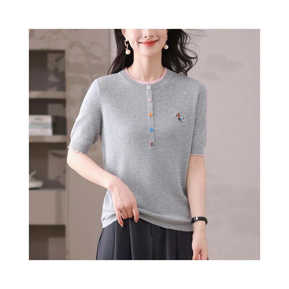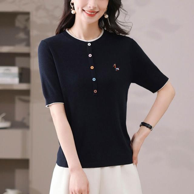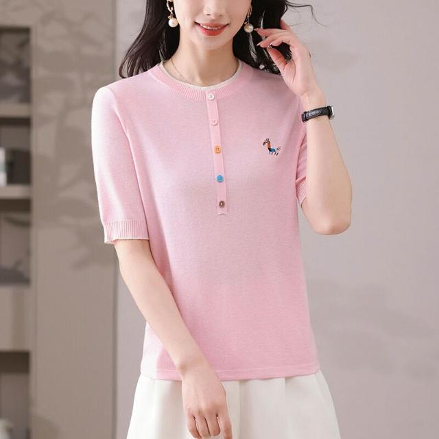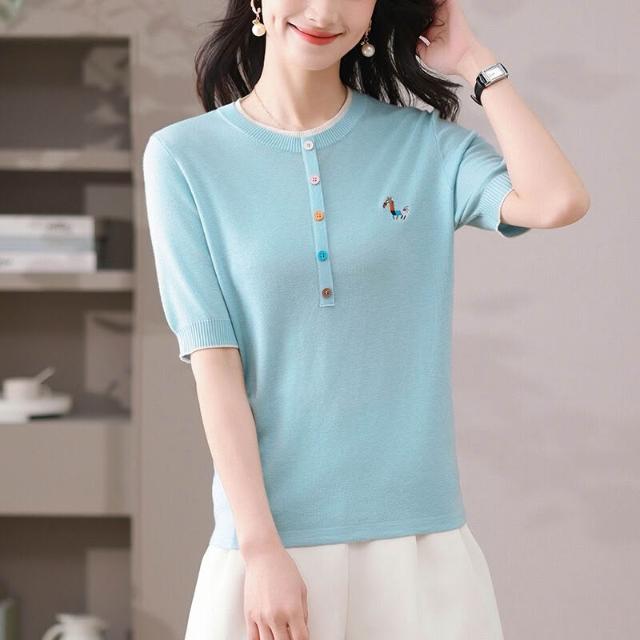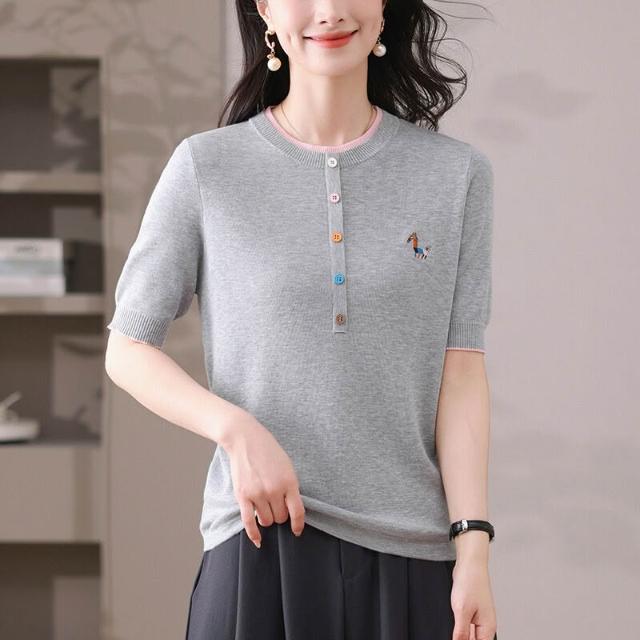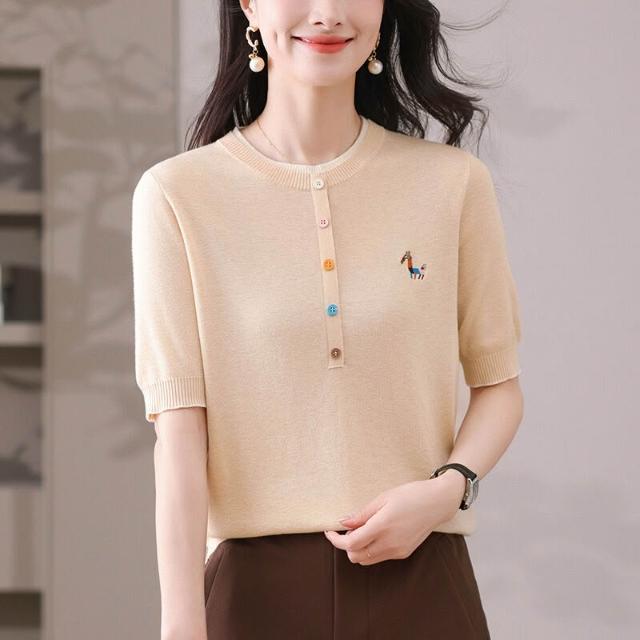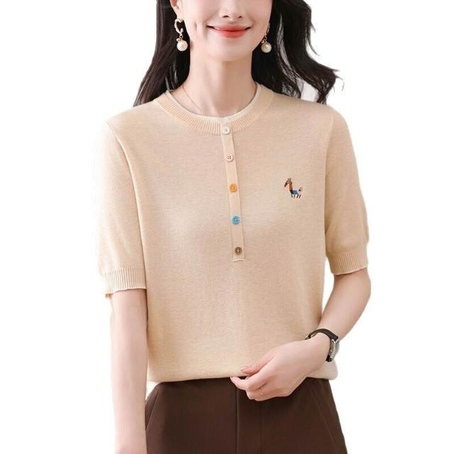 女士短袖Tt恤寬松遮肚子顯瘦冰絲針織衫大氣上檔次上衣夏新款小衫