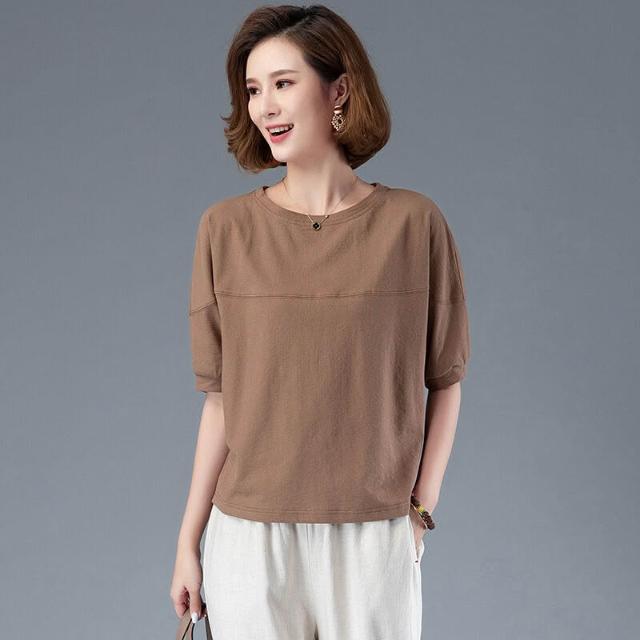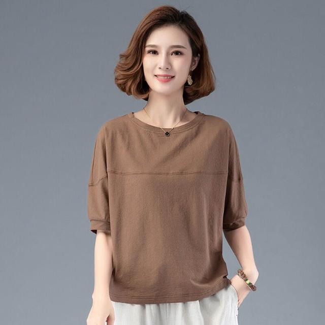 短袖t恤女夏季新款中年女裝媽媽休閑體恤衫遮肚顯瘦短款上衣