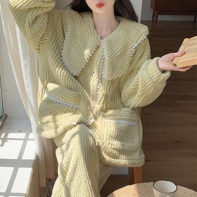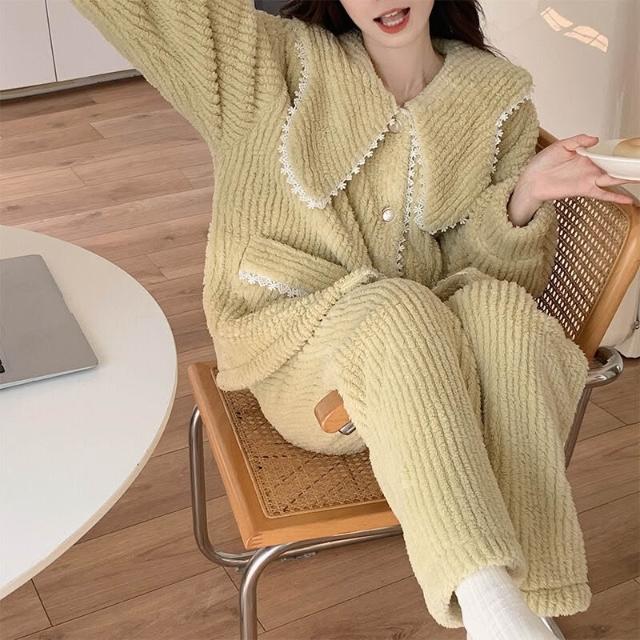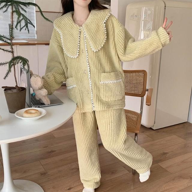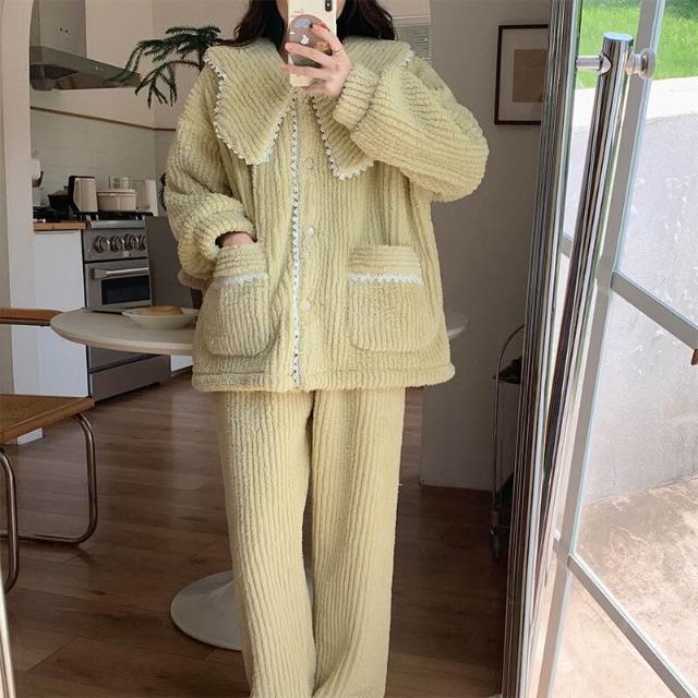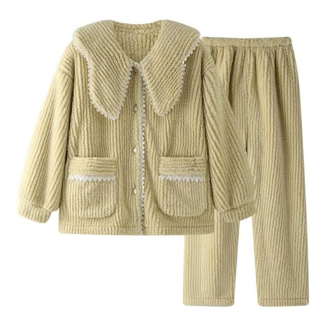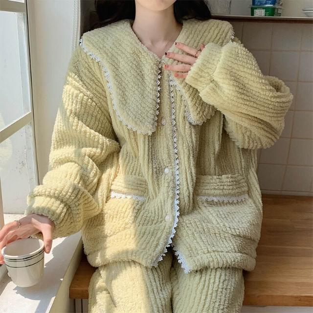 睡衣女士秋冬季珊瑚絨加厚加絨保暖2023新款家居服套裝冬天法蘭絨
