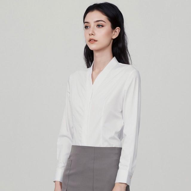 雪紡襯衫 女高級感抗皺 白色長袖上衣 職業通勤內搭 中式V領女士襯衣