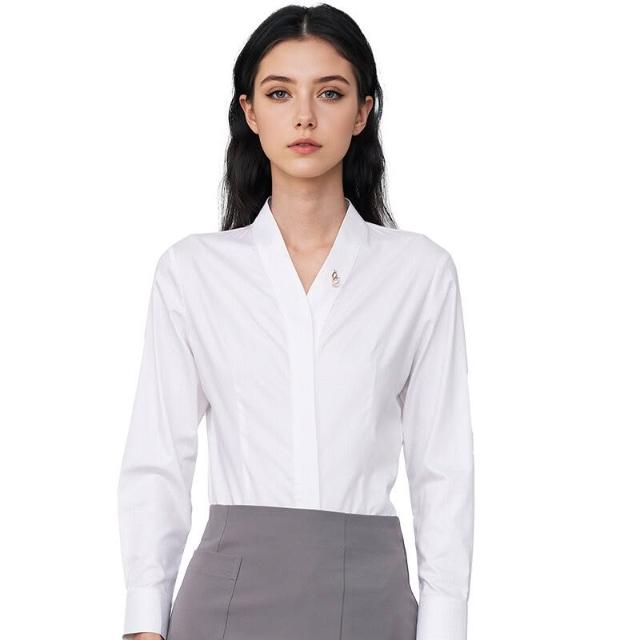 雪紡襯衫 女高級感抗皺 白色長袖上衣 職業通勤內搭 中式V領女士襯衣