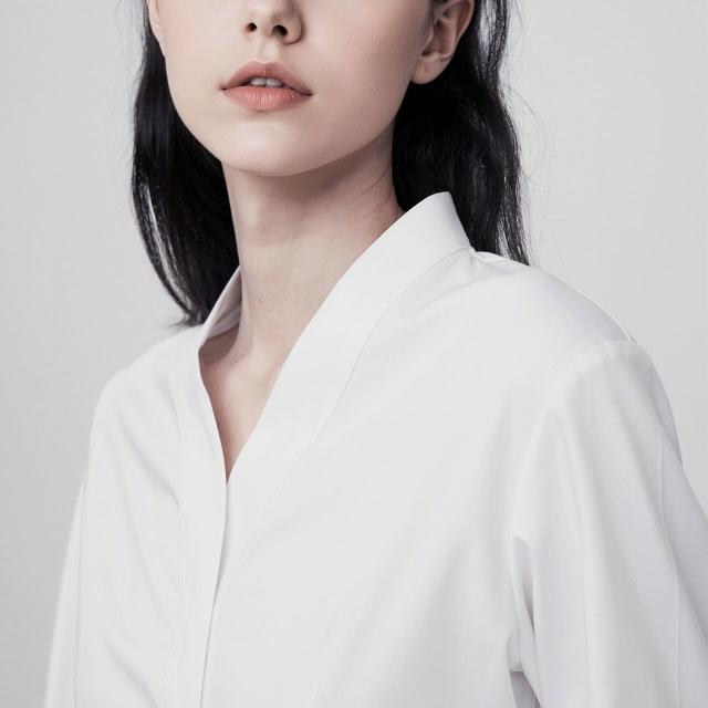雪紡襯衫 女高級感抗皺 白色長袖上衣 職業通勤內搭 中式V領女士襯衣