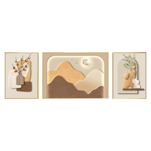 輕奢客廳裝飾畫奶油風沙發背景墻三聯掛畫新中式高級感墻壁畫組合 雲溪精選
