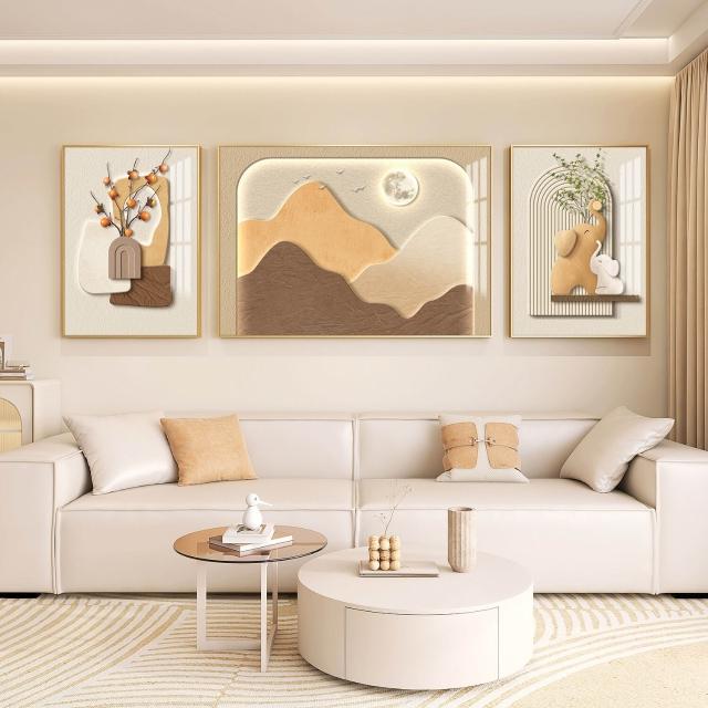 輕奢客廳裝飾畫奶油風沙發背景墻三聯掛畫新中式高級感墻壁畫組合 雲溪精選