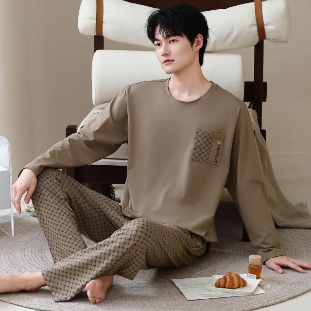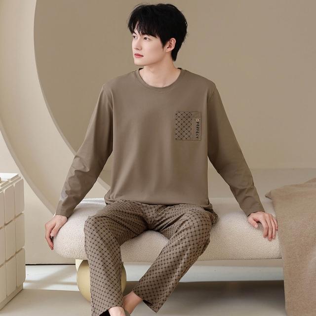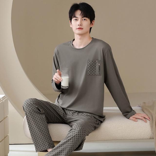 雲溪 純棉睡衣男士春秋新款長袖長褲男款秋季家居服套裝圓領可外穿