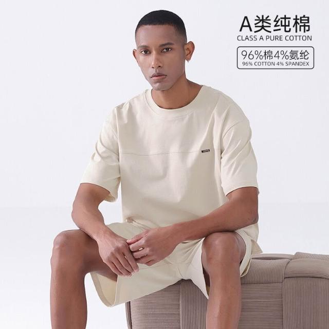 雲溪 萊卡棉睡衣男款夏季短袖純棉高級感夏天男士家居服套裝可外穿