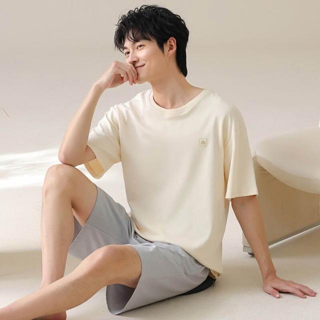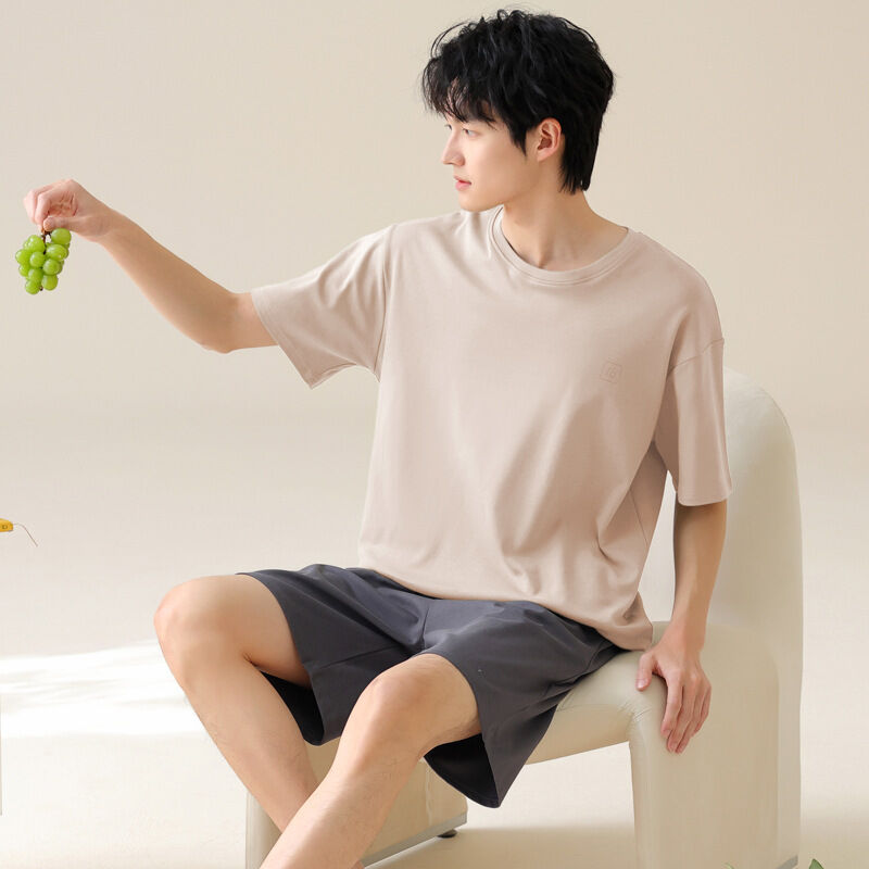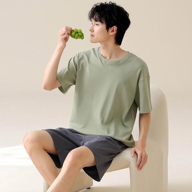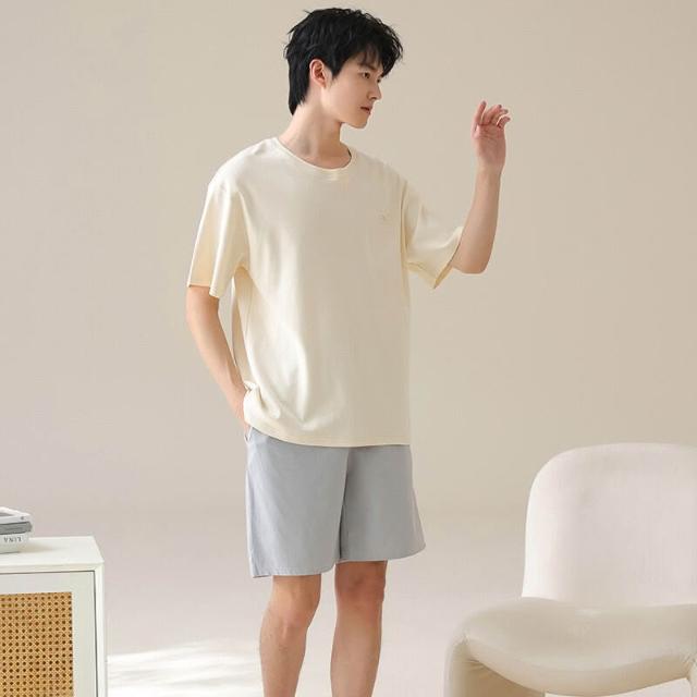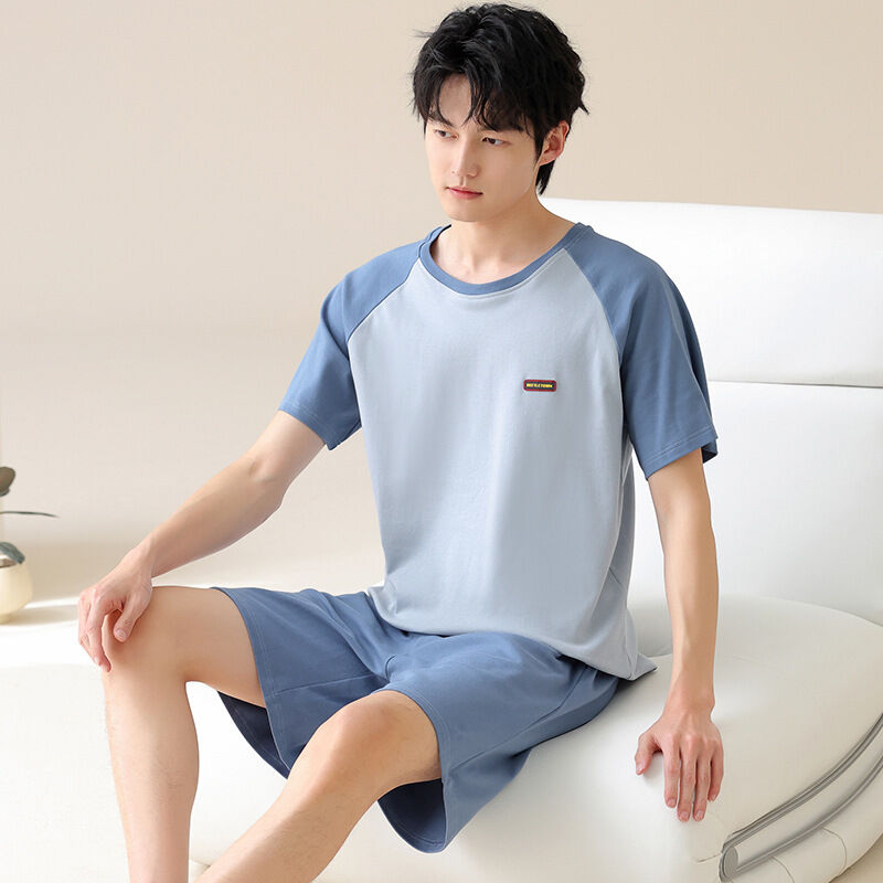 雲溪 男士睡衣夏季純棉短袖短褲夏天薄款休閑大碼家居服男款套裝可外穿