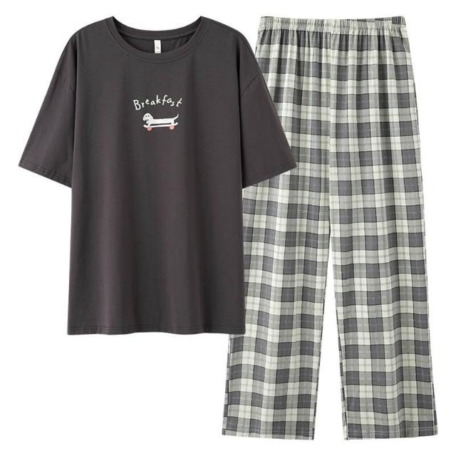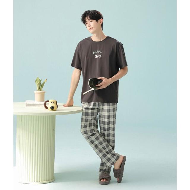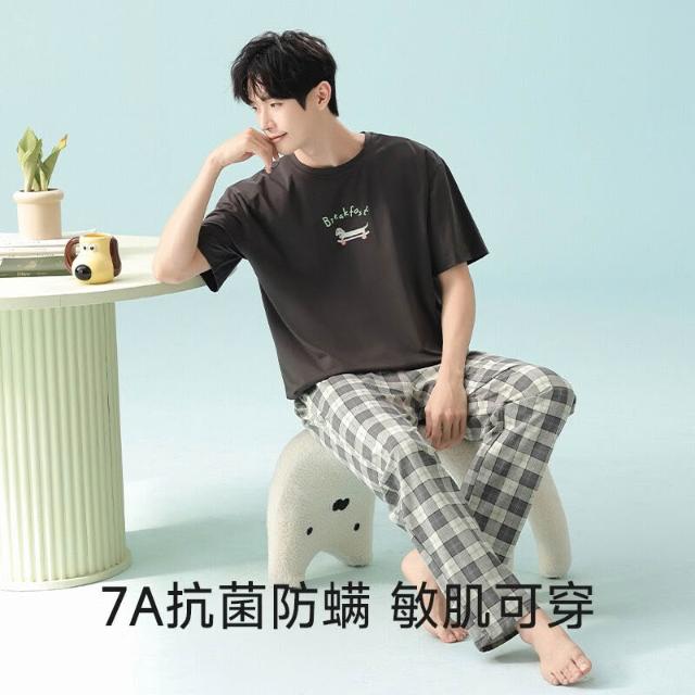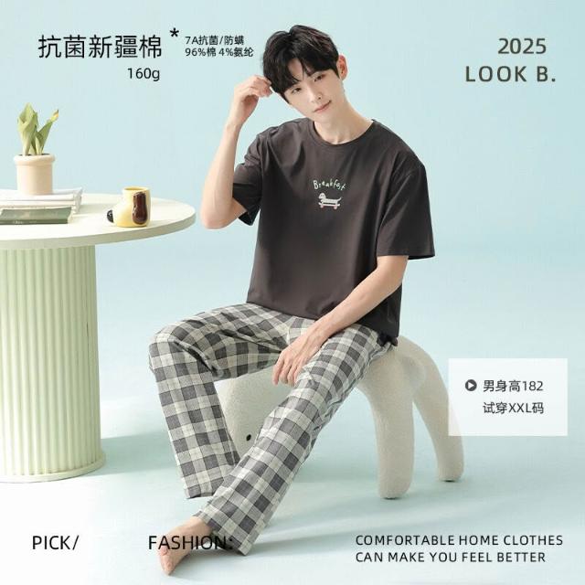 雲溪 抗菌新疆棉夏季純棉男士睡衣短袖長褲拉架棉薄款可外穿家居服