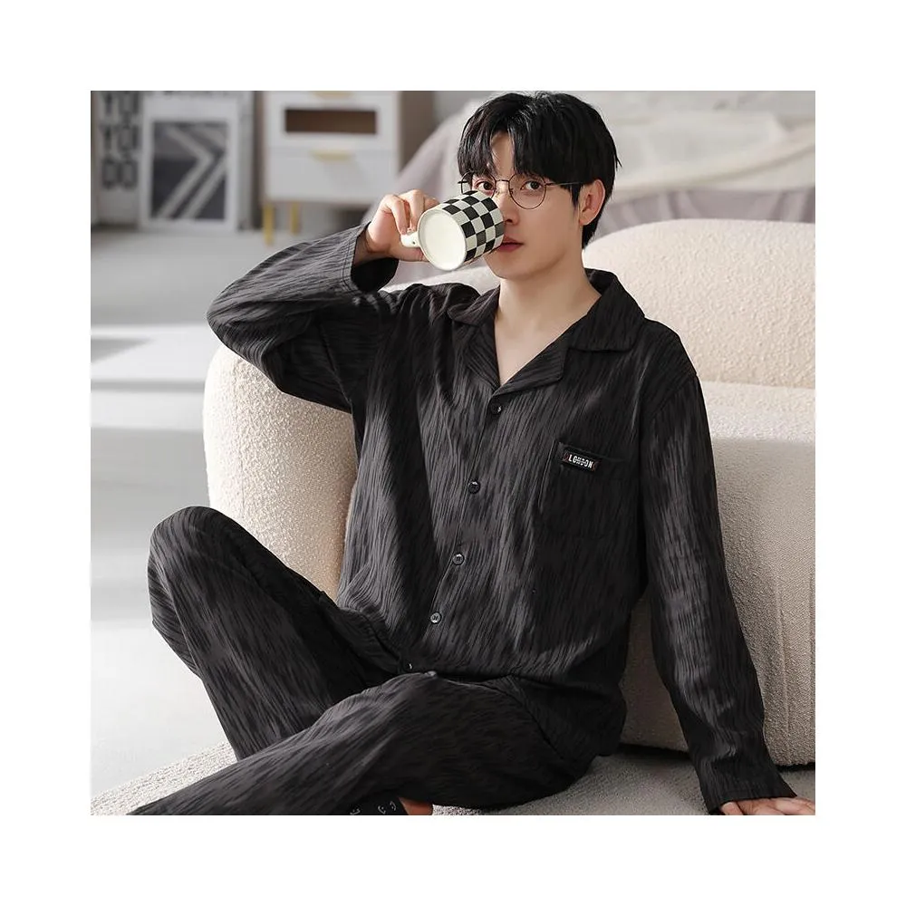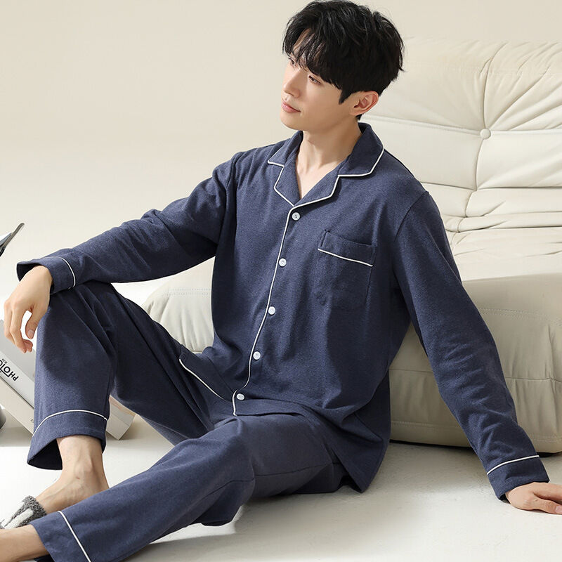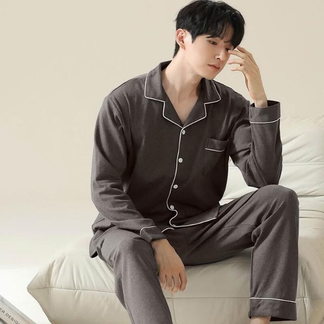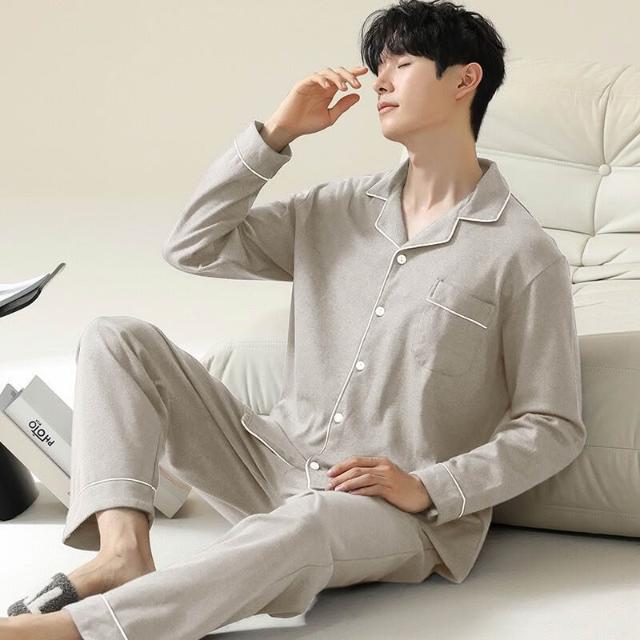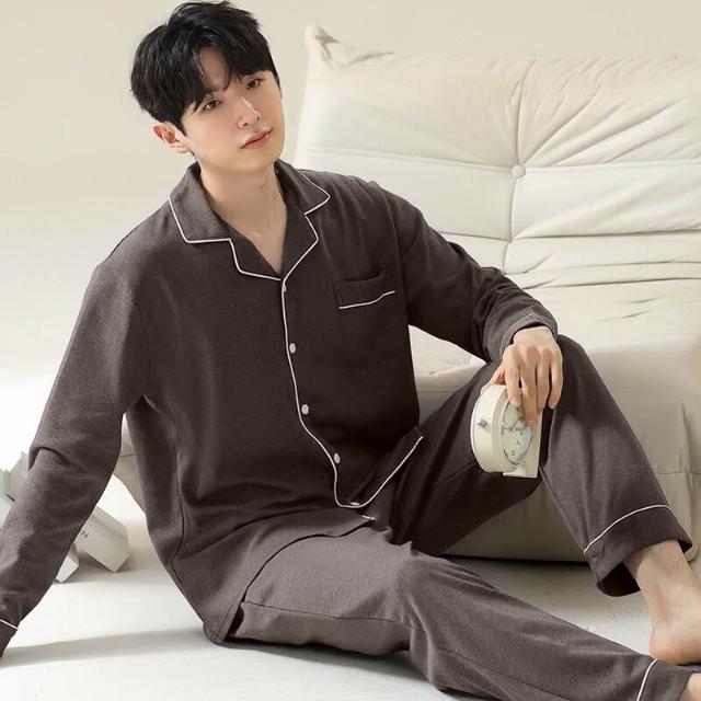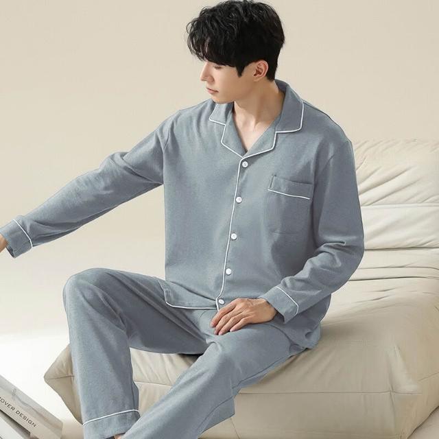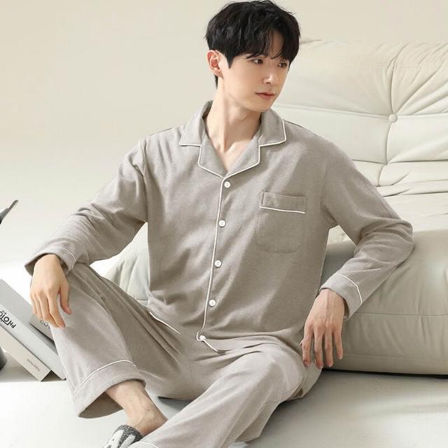雲溪 100%純棉睡衣男士秋冬季2025新款開衫長袖寬松款可外穿家居服套裝
