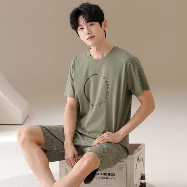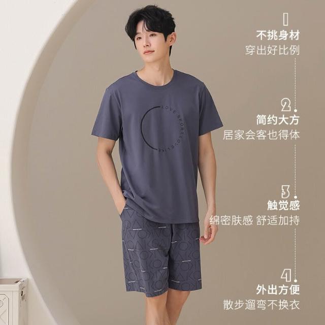雲溪 睡衣男夏天純棉薄款短袖短褲休閑大碼可外穿夏季涼感家居服男款