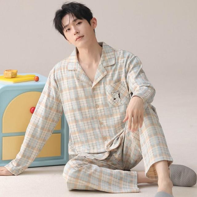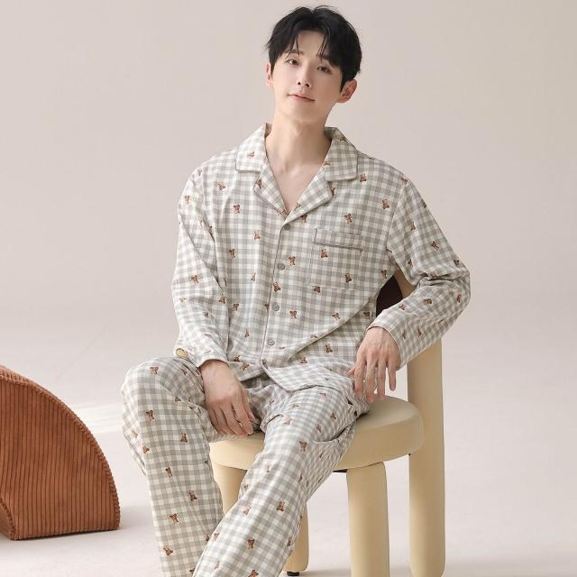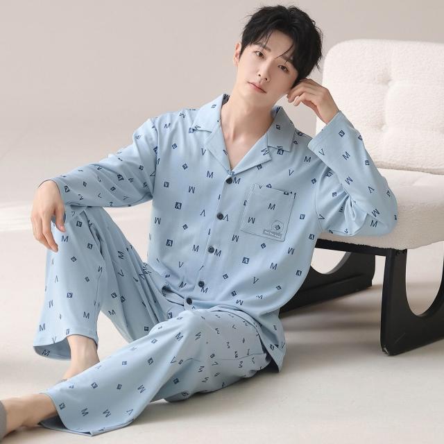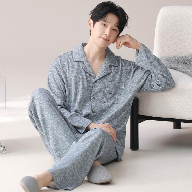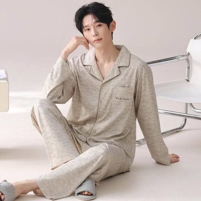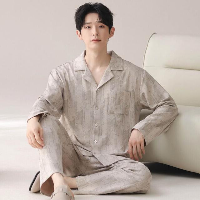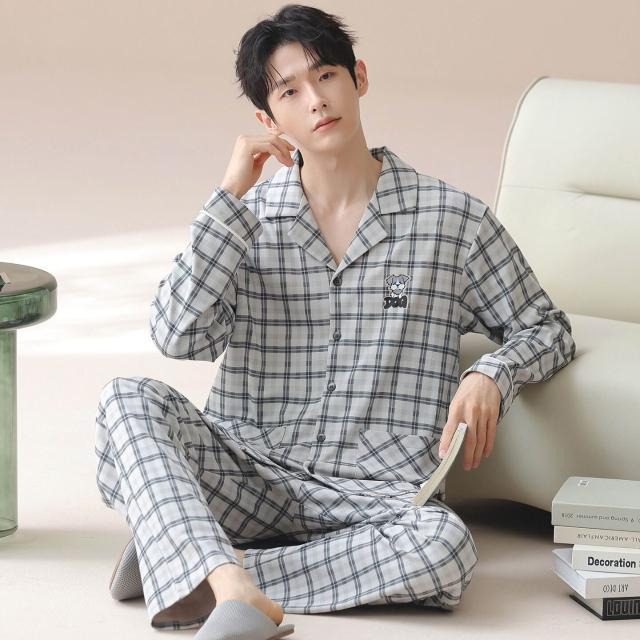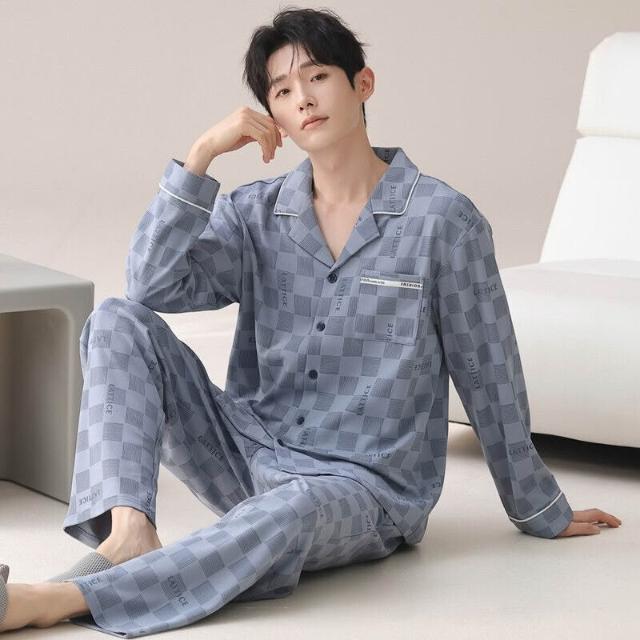 雲溪 睡衣男士春秋款純棉長袖套裝家居服翻領條紋大碼簡約風寬松可外穿