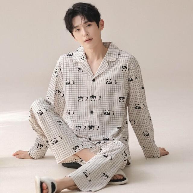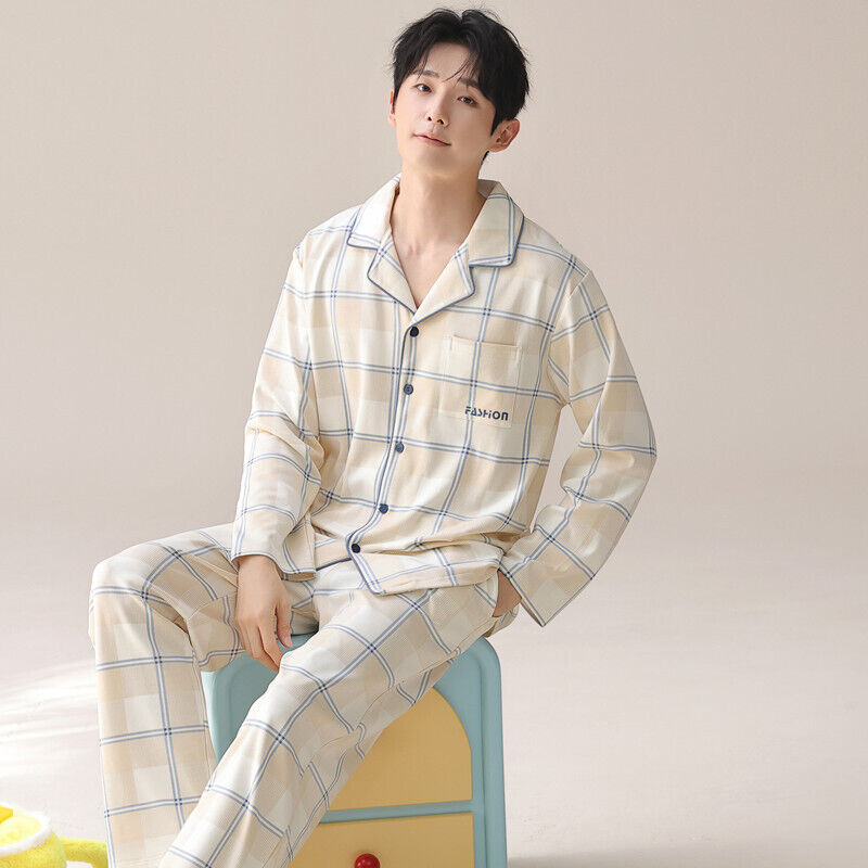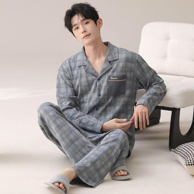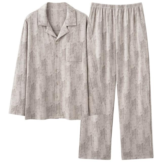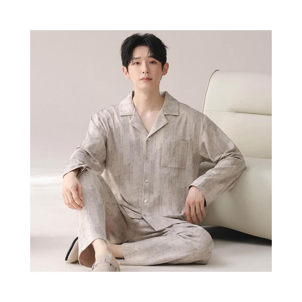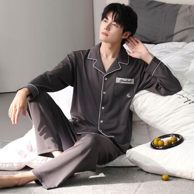 雲溪 睡衣男士春秋款純棉長袖套裝家居服翻領條紋大碼簡約風寬松可外穿
