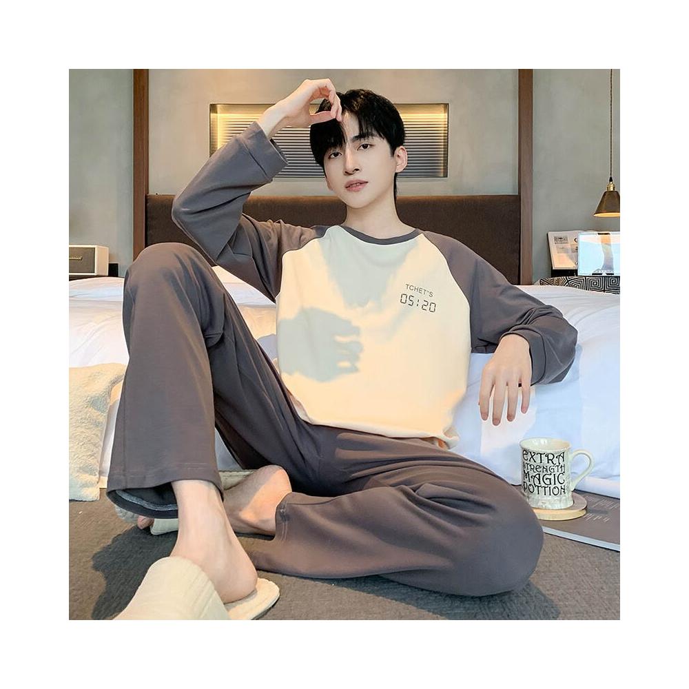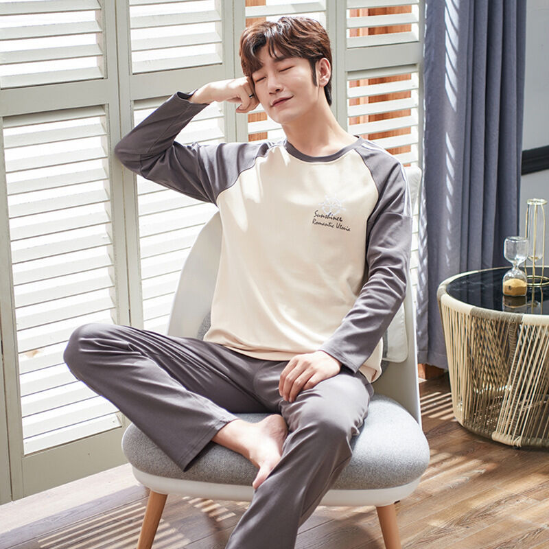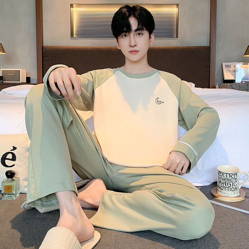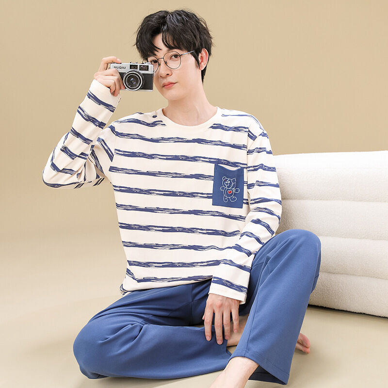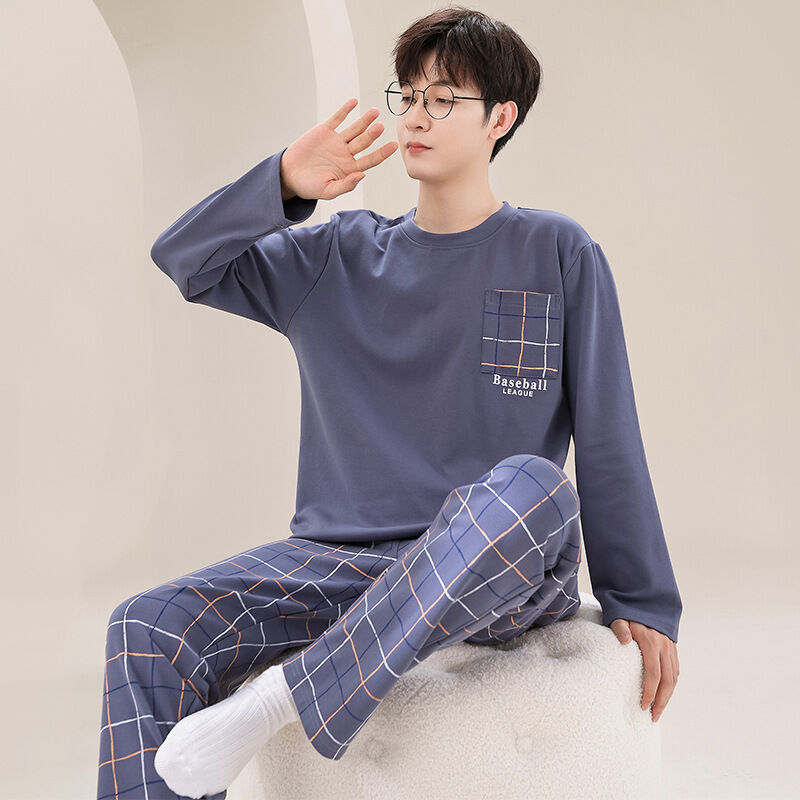 雲溪 純棉男士睡衣春秋季新款長袖簡約套頭男款學生家居服休閑套裝