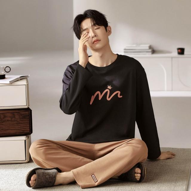 雲溪 睡衣男士春秋款純棉長袖男款純色秋季年新款加大碼秋冬家居服