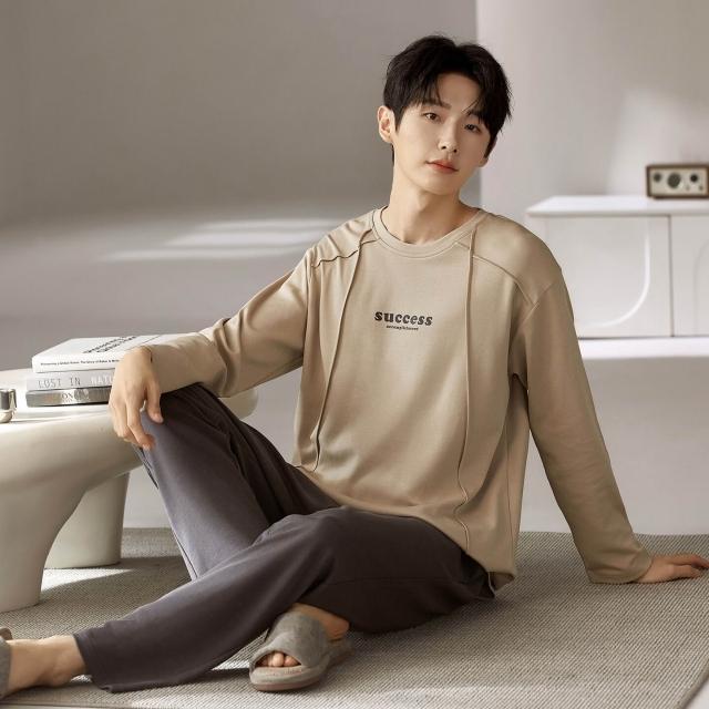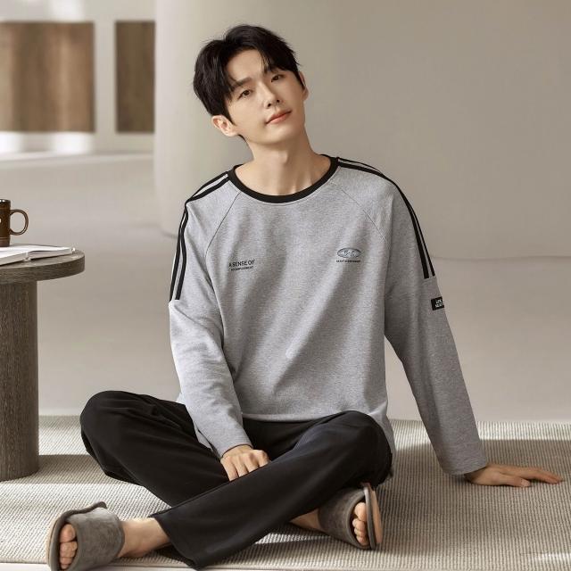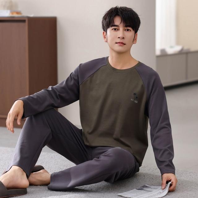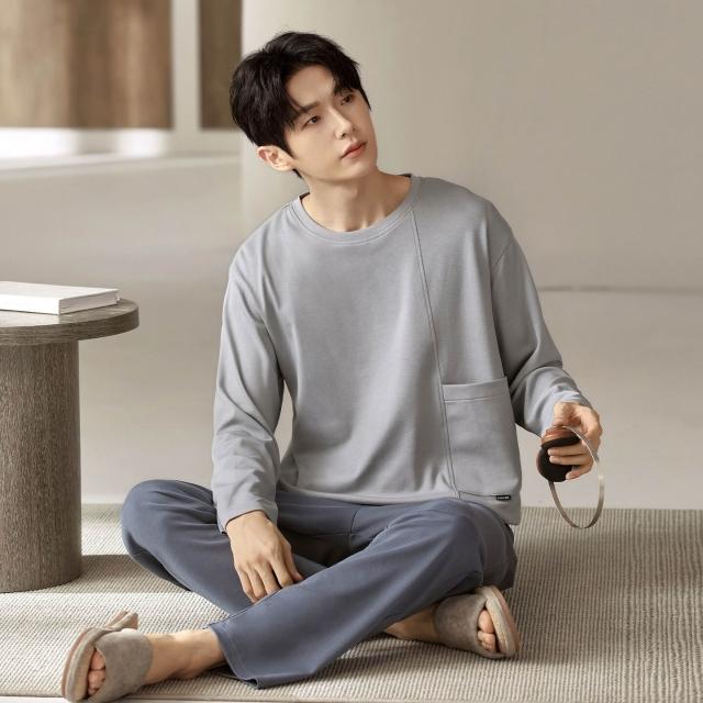 雲溪 睡衣男士春秋款純棉長袖男款純色秋季年新款加大碼秋冬家居服