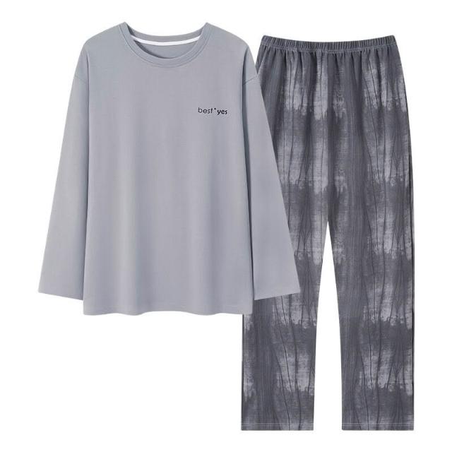 雲溪 睡衣男士春秋款純棉長袖男款純色秋季年新款加大碼秋冬家居服
