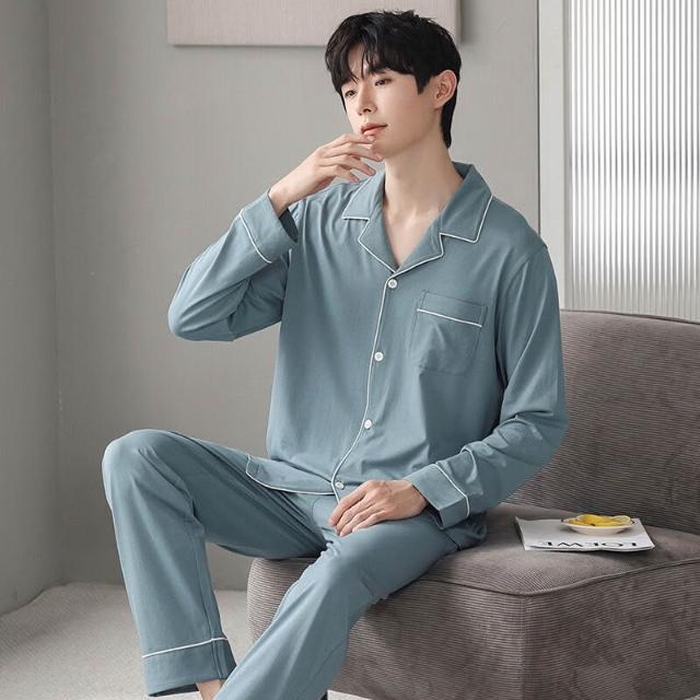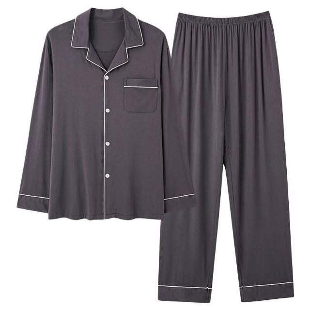 雲溪 男士青年莫代爾睡衣春秋季新款長袖簡約開衫家居服時尚可外穿套裝