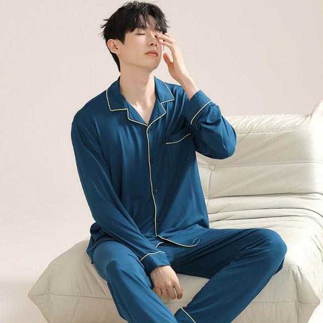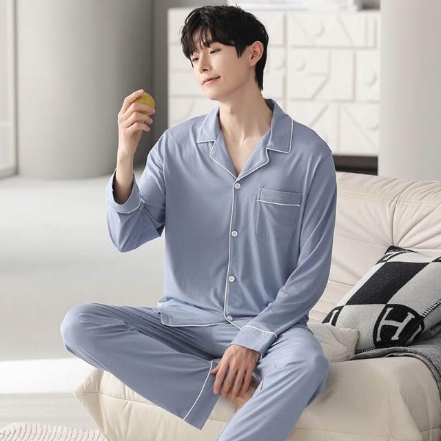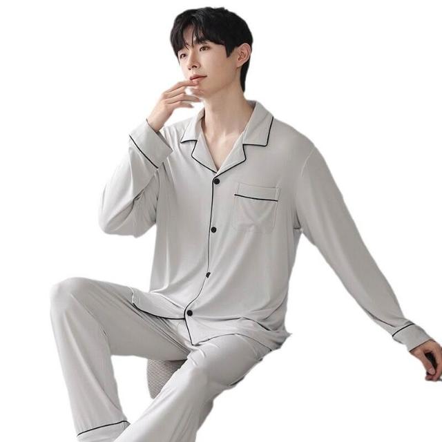 雲溪 男士青年莫代爾睡衣春秋季新款長袖簡約開衫家居服時尚可外穿套裝