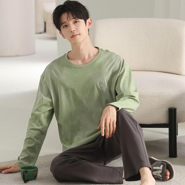 雲溪 春季新款雙面純棉男士圓領睡衣2026年青年男士寬松舒適雙長家居服
