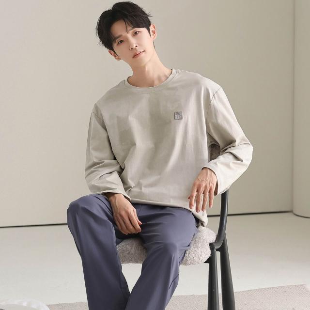 雲溪 春季新款雙面純棉男士圓領睡衣2026年青年男士寬松舒適雙長家居服