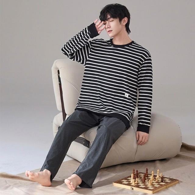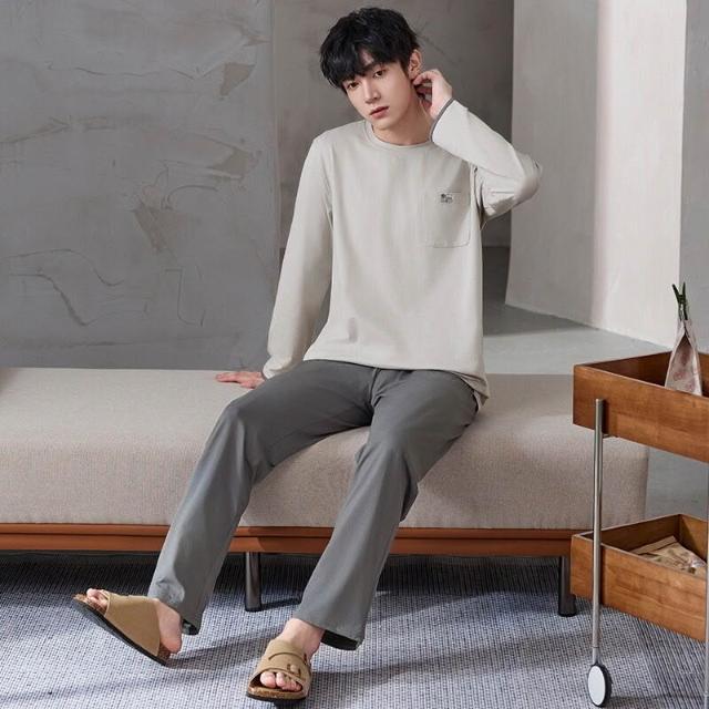 雲溪 睡衣純棉長袖男士春秋季休閑簡約全棉新款青年圓領家居服套裝