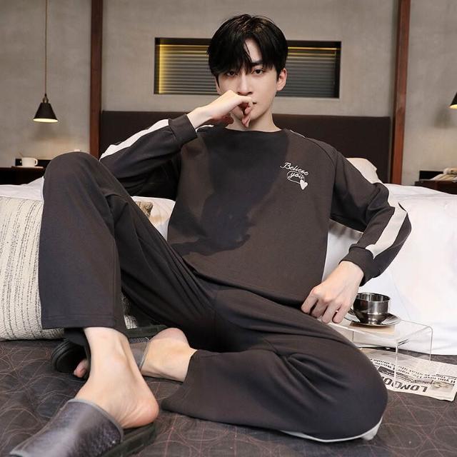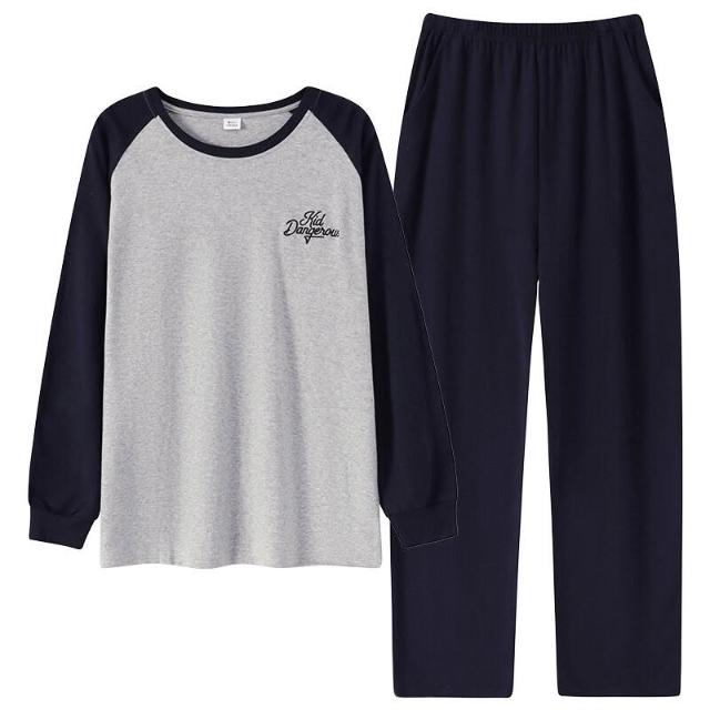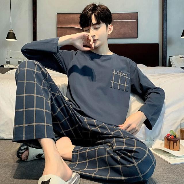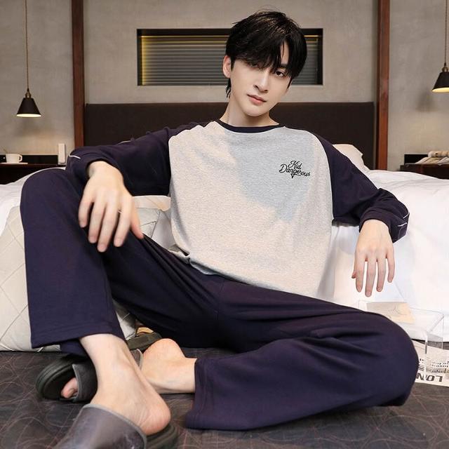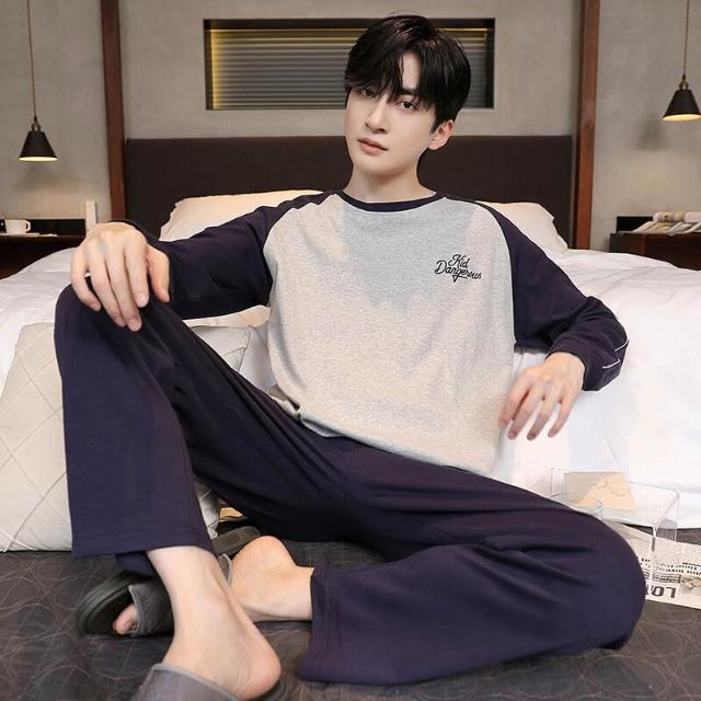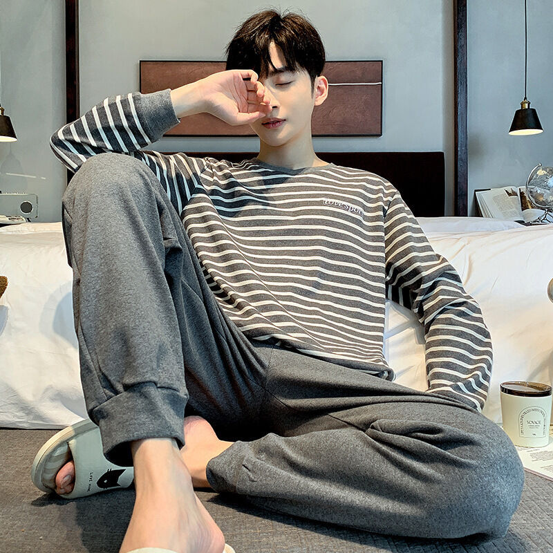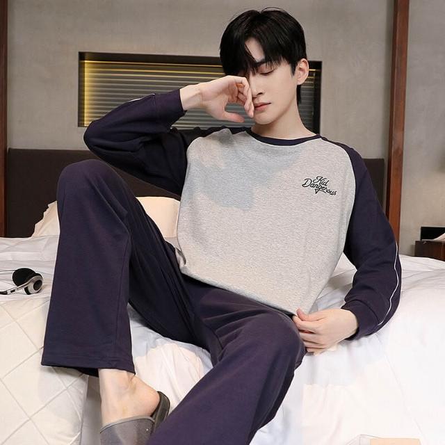 雲溪 男春秋睡衣純棉套裝長袖學生可外穿全棉加厚大碼運動寬松家居服冬