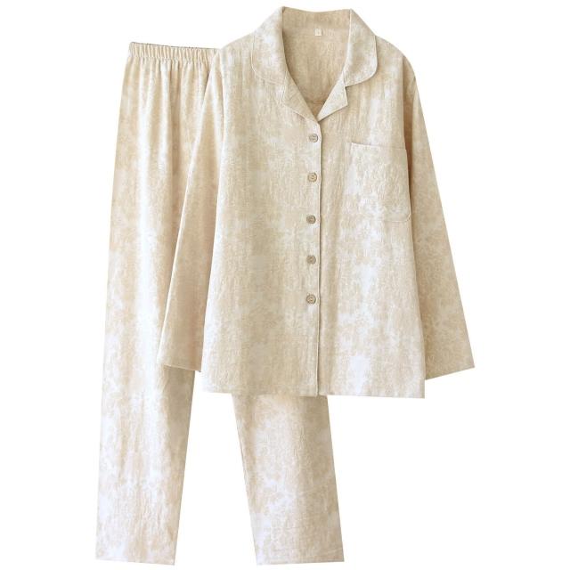 雲溪 春秋季情侶簡約亞麻睡衣女士寬松大碼長袖長褲男士棉麻家居服套裝