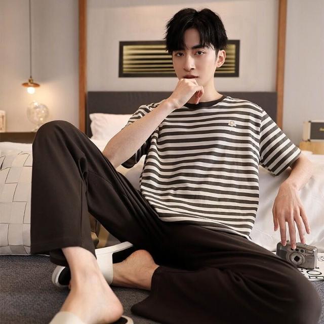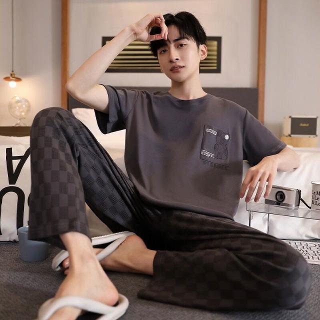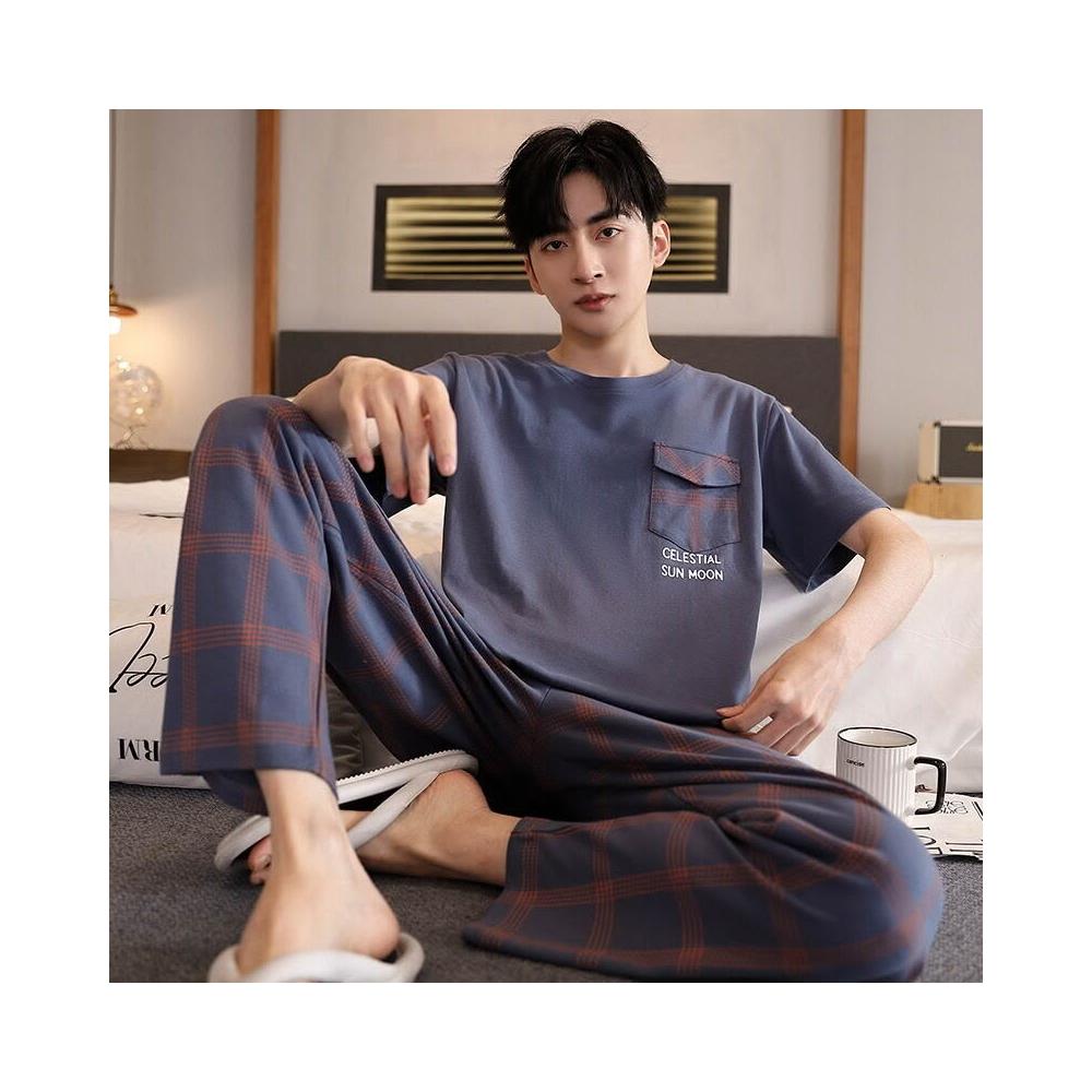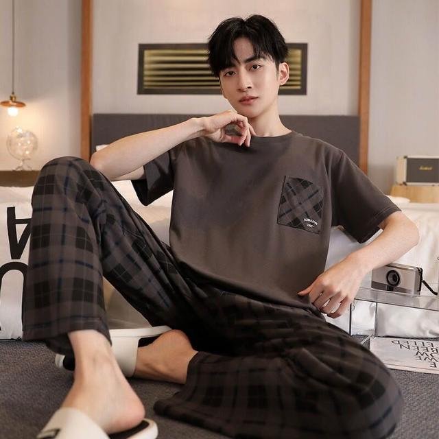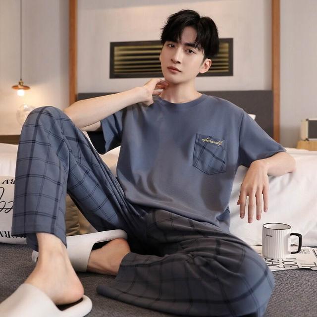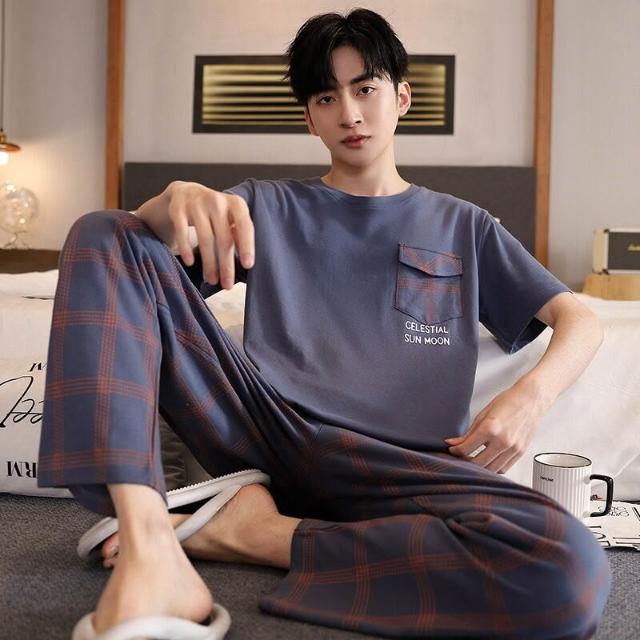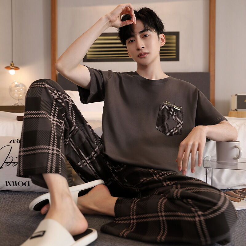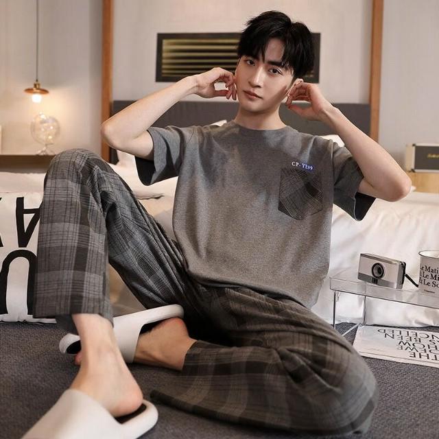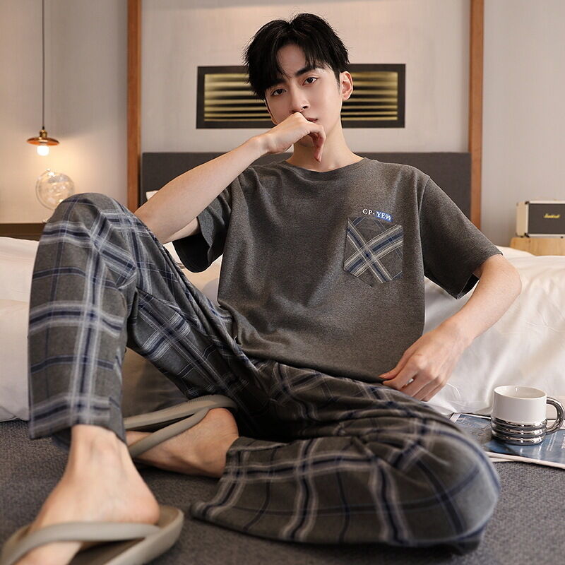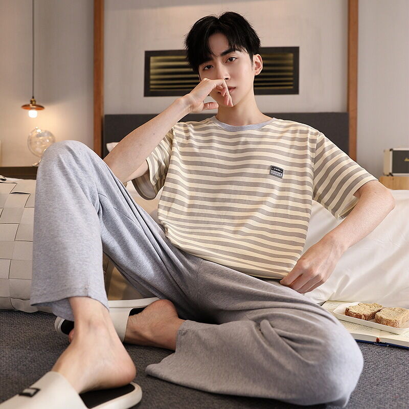雲溪甄選 男士睡衣春秋夏季薄款純棉短袖長褲大碼青少年男生外穿家居服套裝