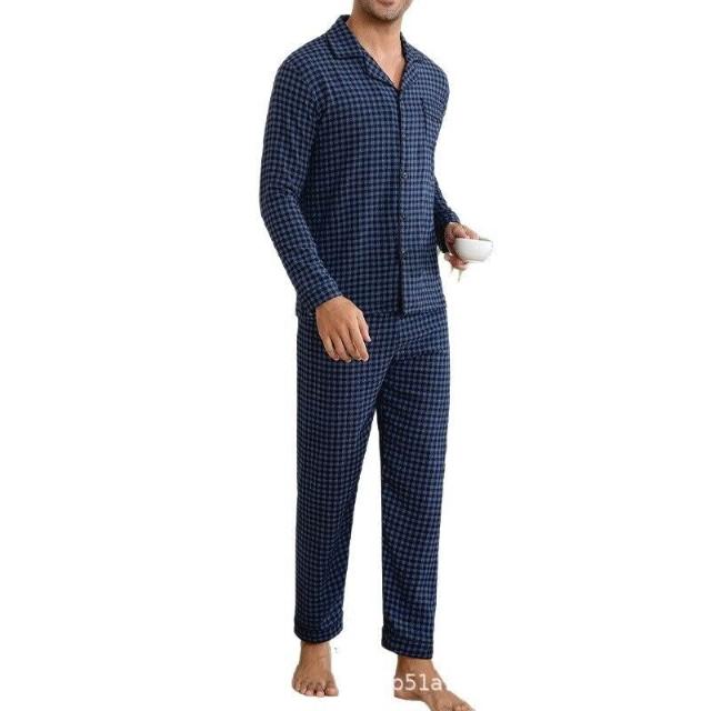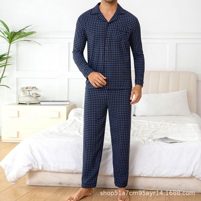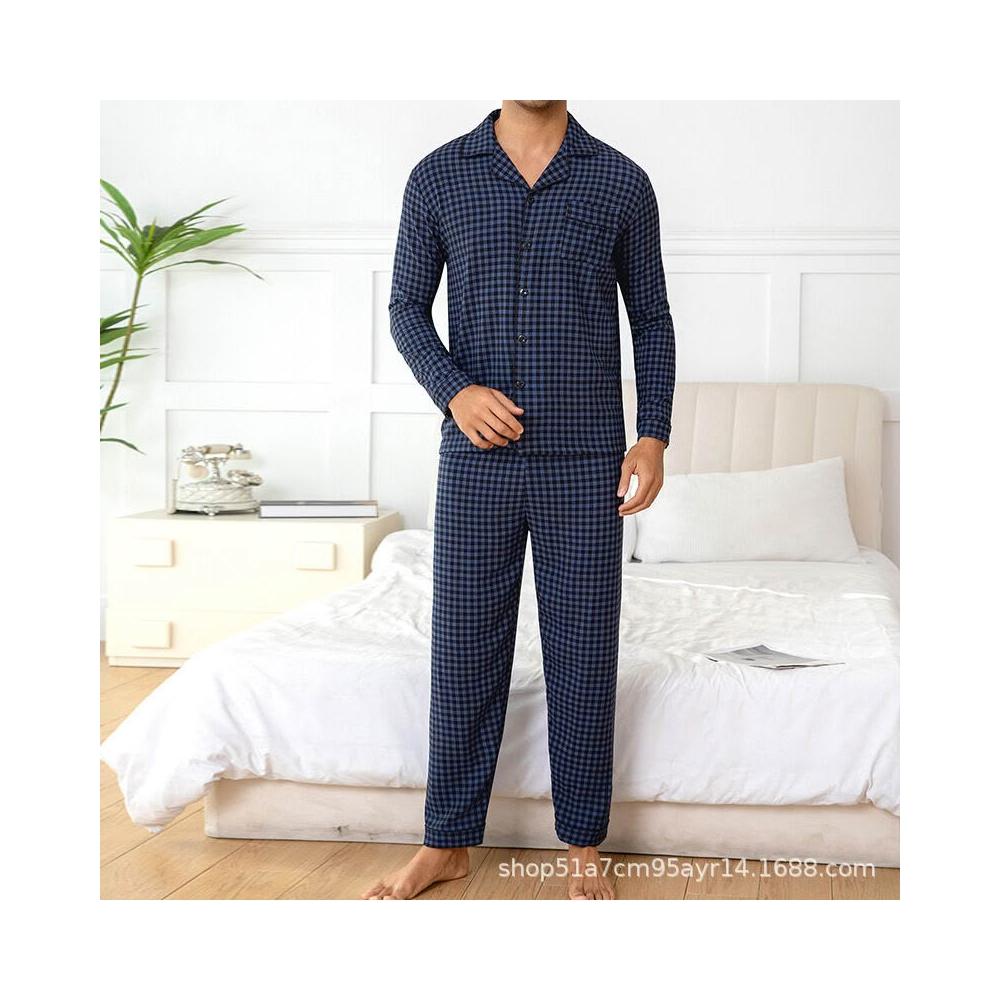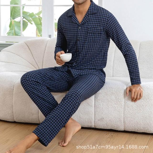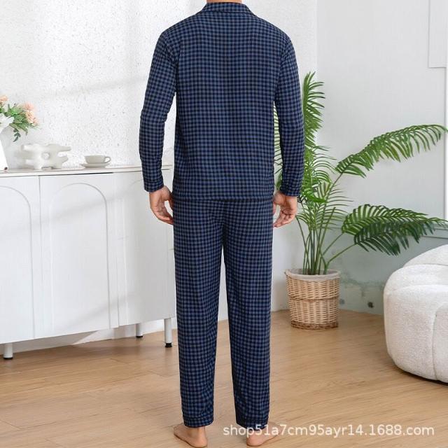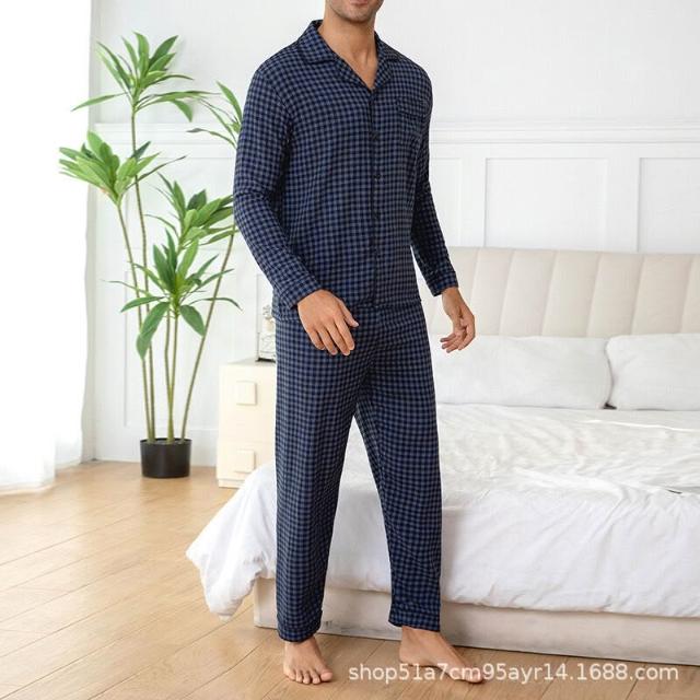 雲溪甄選 夏季男士爆款休閑格子長褲長褲睡衣套裝家居服