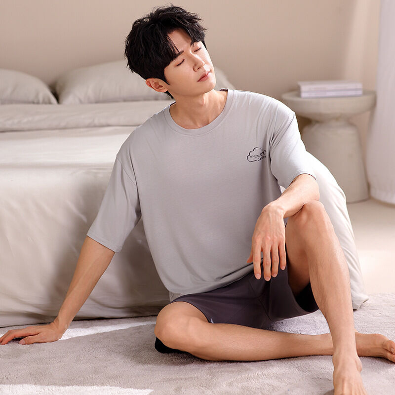 雲溪甄選 莫代爾男士睡衣短袖短褲夏季薄款家居服休閑男式夏天外穿套裝新款