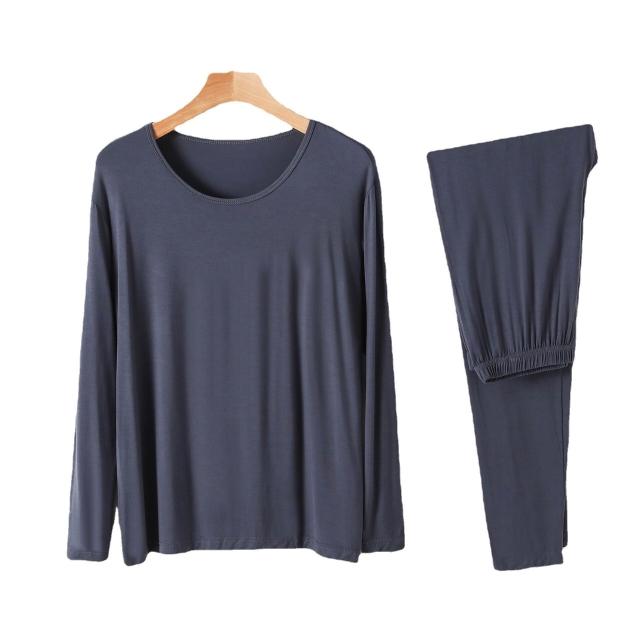 雲溪甄選 莫代爾男款656圓領長袖長褲家居服彈力舒適垂感大碼內衣休閑睡衣