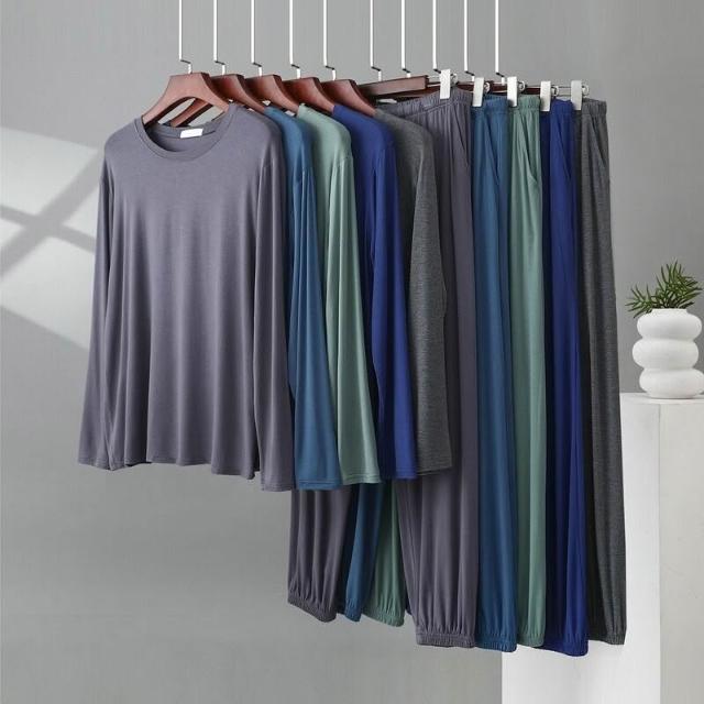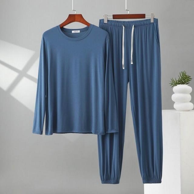 雲溪甄選 莫代爾男士圓領長袖長褲可外穿家居服薄款春秋季新款大碼睡衣睡褲