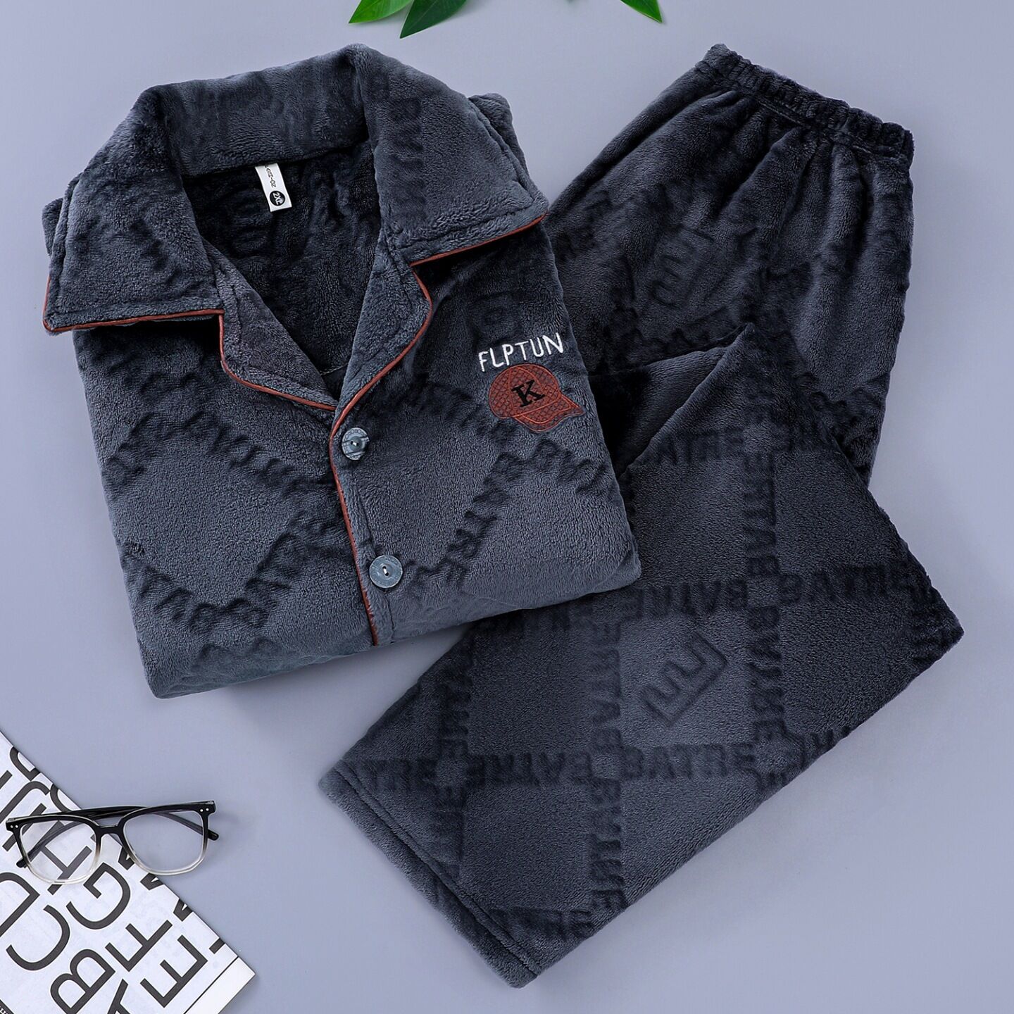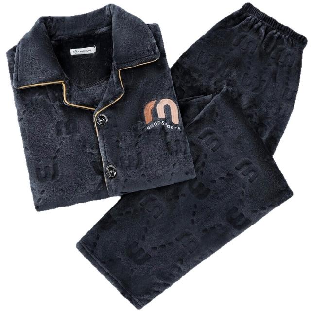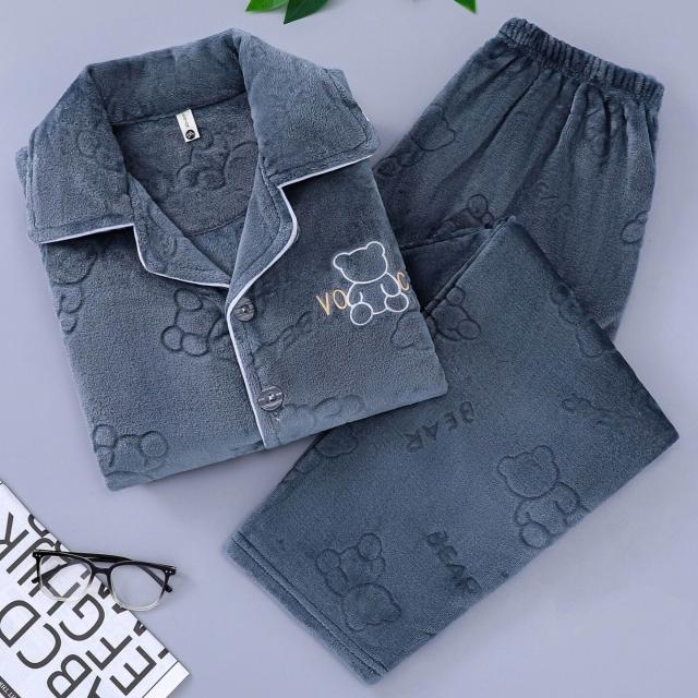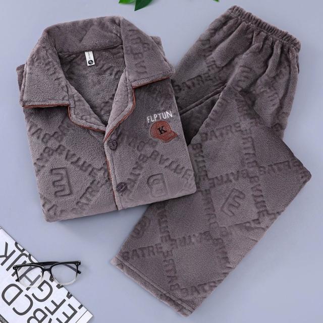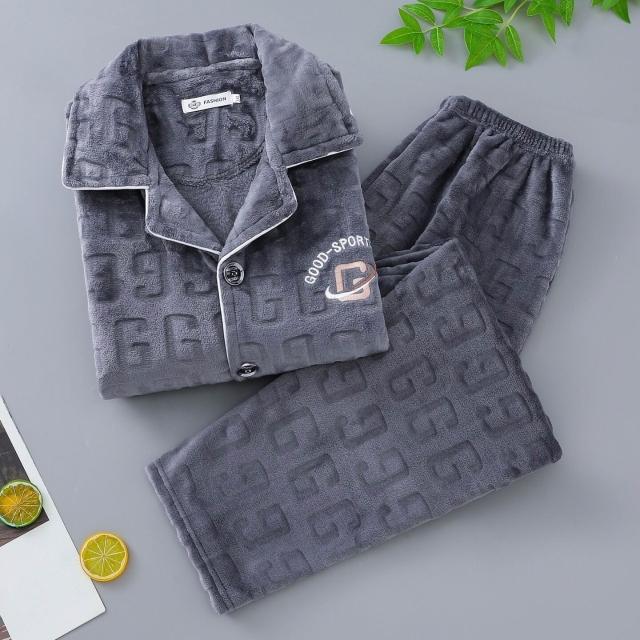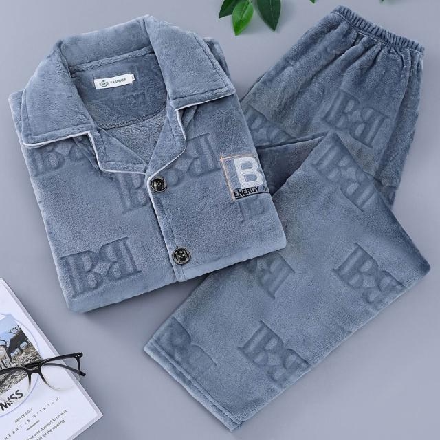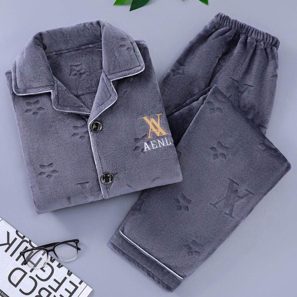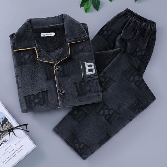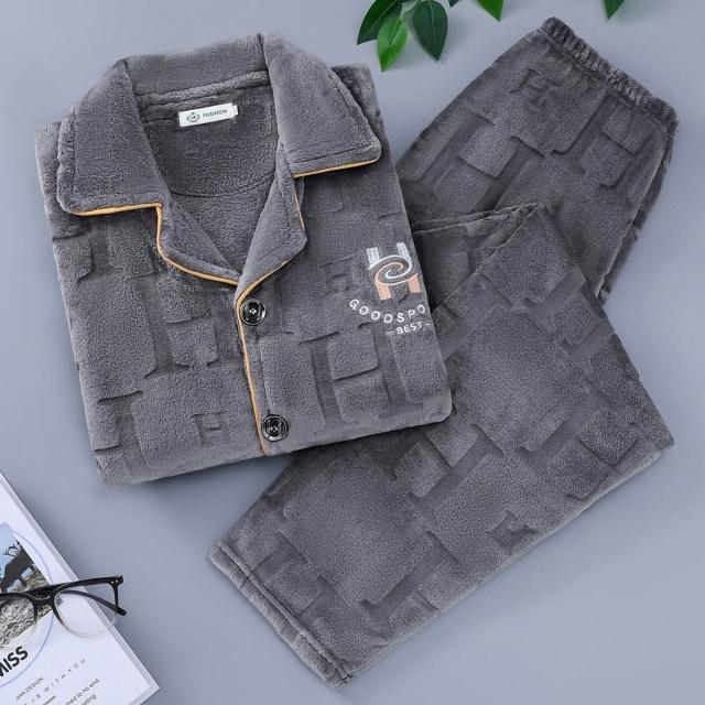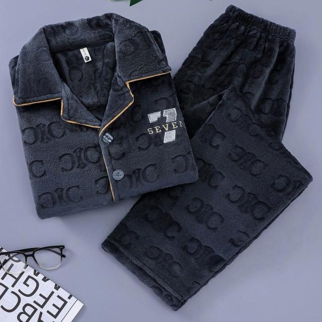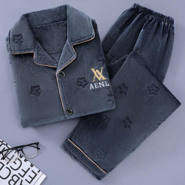 雲溪甄選 秋冬季保暖舒適簡約男士睡衣休閑長袖長褲加大碼家居服套裝可外穿