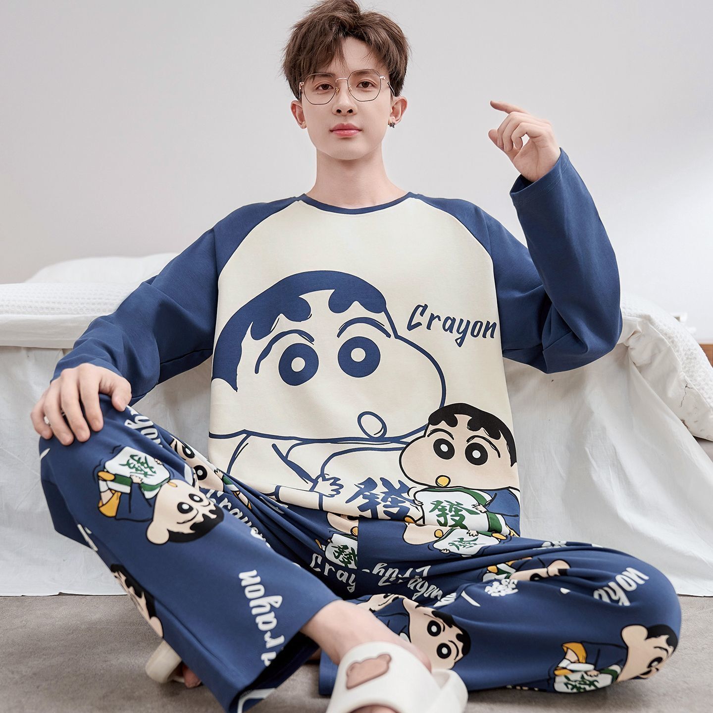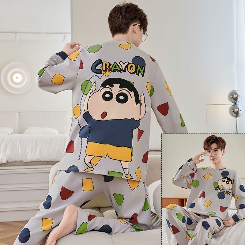 雲溪精選 男士睡衣純棉長袖春秋季薄款青少年學生男孩可出門家居服夏天套裝