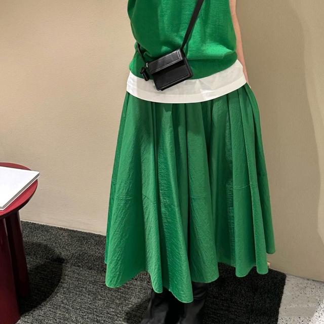 雲溪♡ 綠色半裙褶裥細節中長高腰半身裙大擺裙26春季新品