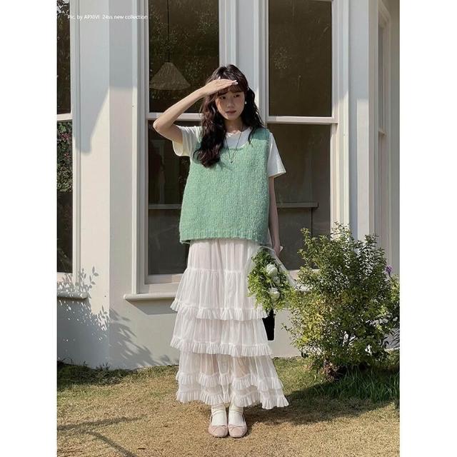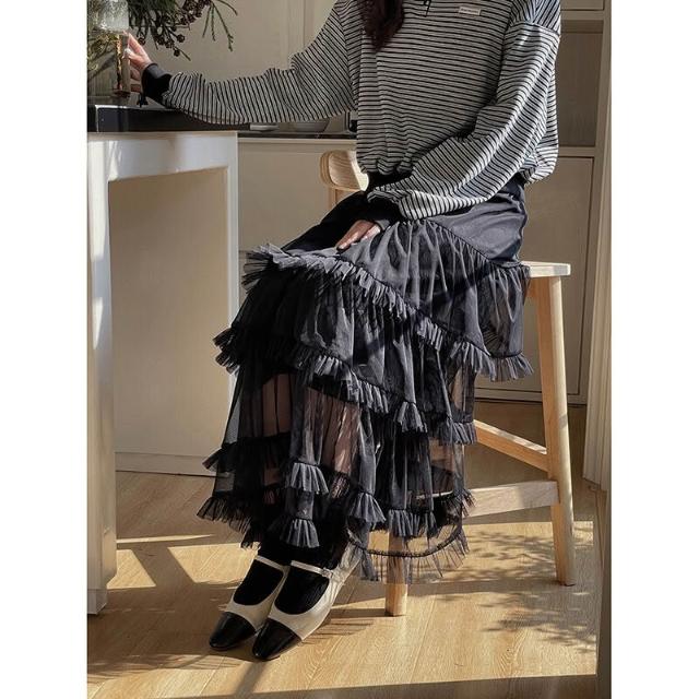 雲溪♡ 法式復古蕾絲花邊蛋糕裙女春季a字半身裙