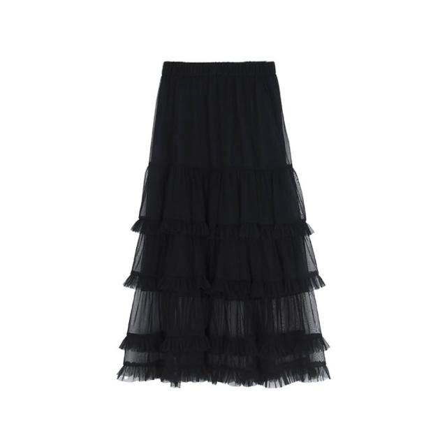 雲溪♡ 法式復古蕾絲花邊蛋糕裙女春季a字半身裙