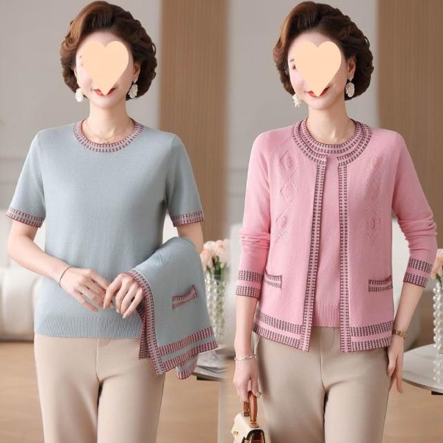 『雲溪』 媽媽春秋款兩件套女士小香風外套中老年針織開衫爆款時尚洋氣上衣