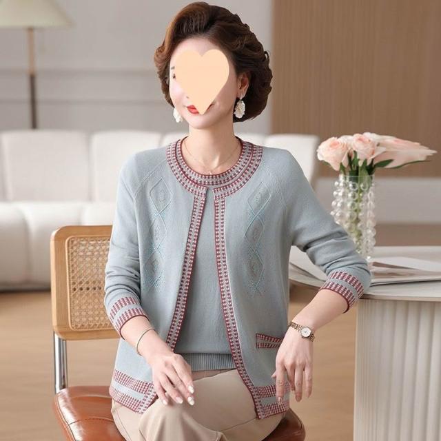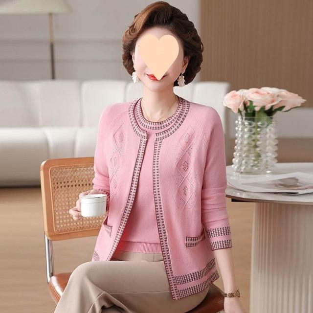 『雲溪』 媽媽春秋款兩件套女士小香風外套中老年針織開衫爆款時尚洋氣上衣