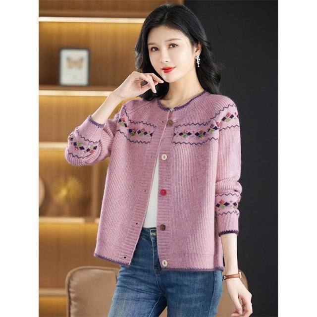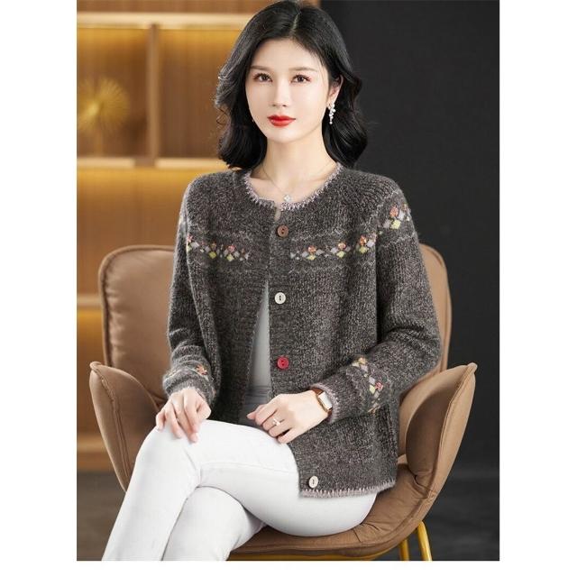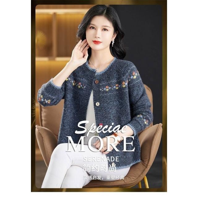 『雲溪』 中老年女裝春秋大碼寬松針織毛衣外套媽媽裝母親節網紅爆款開衫女