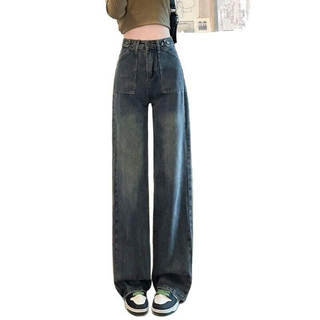雲溪 真維斯復古闊腿牛仔褲2025春夏新款寬松美式高腰直筒顯瘦拖地褲子