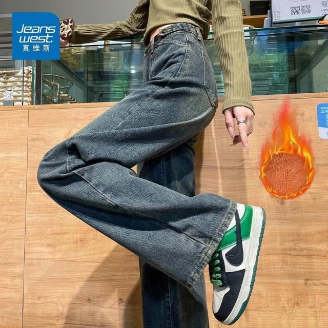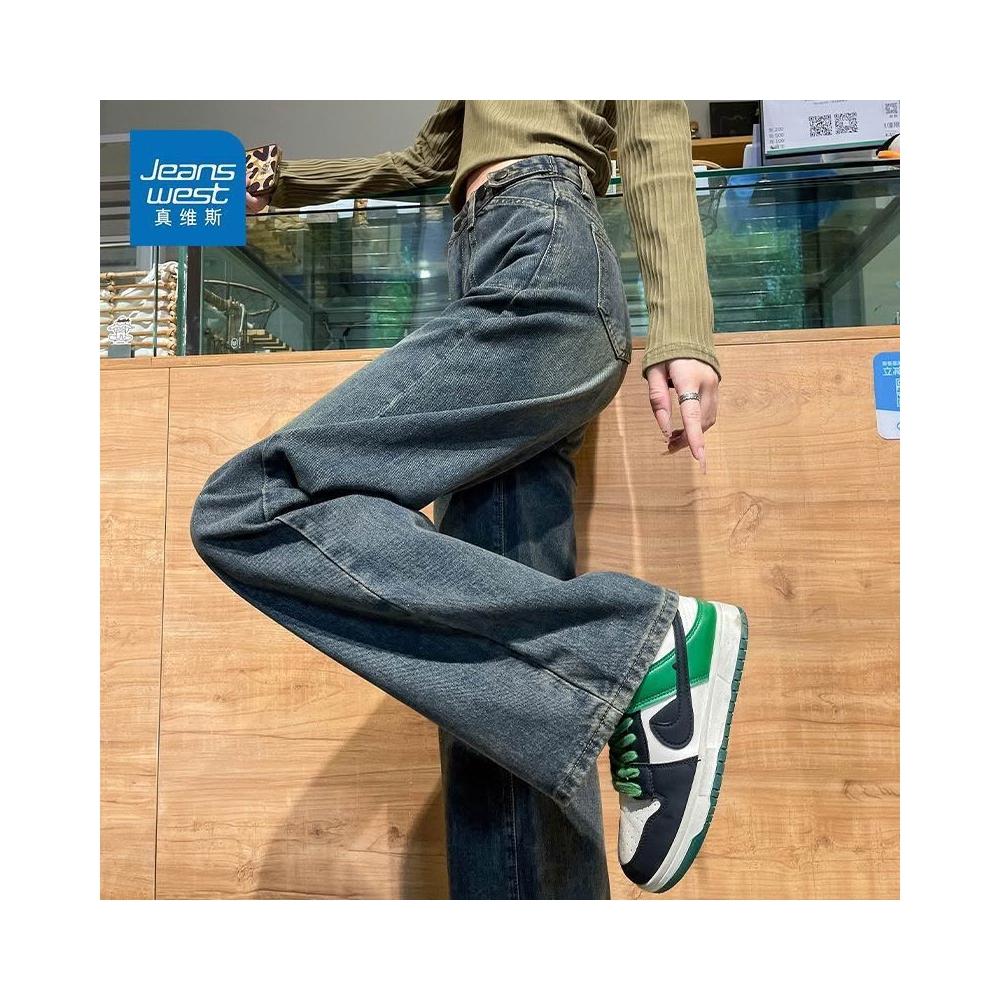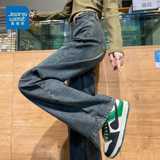 雲溪 真維斯復古闊腿牛仔褲2025春夏新款寬松美式高腰直筒顯瘦拖地褲子