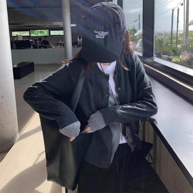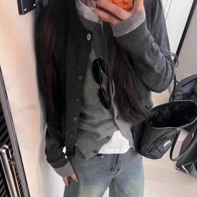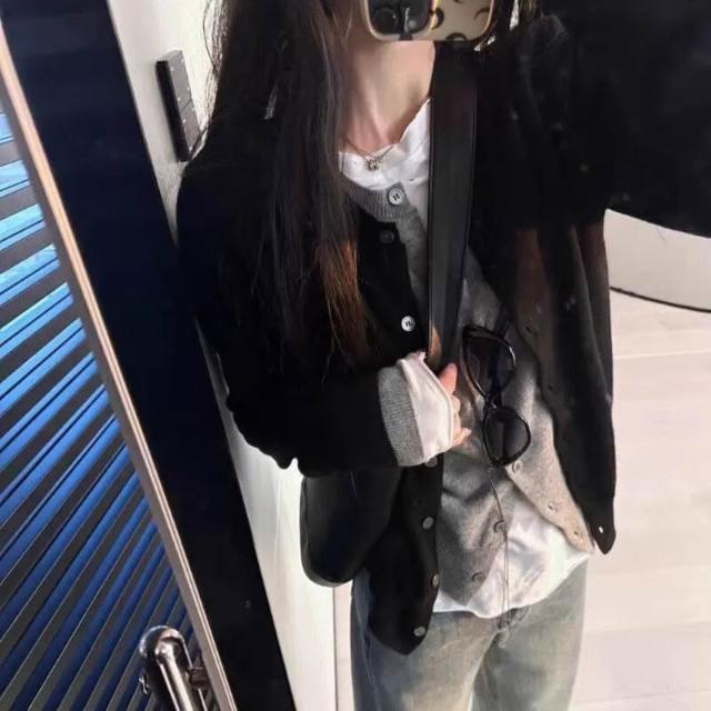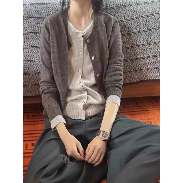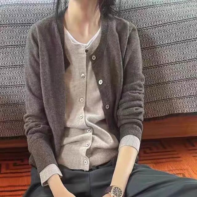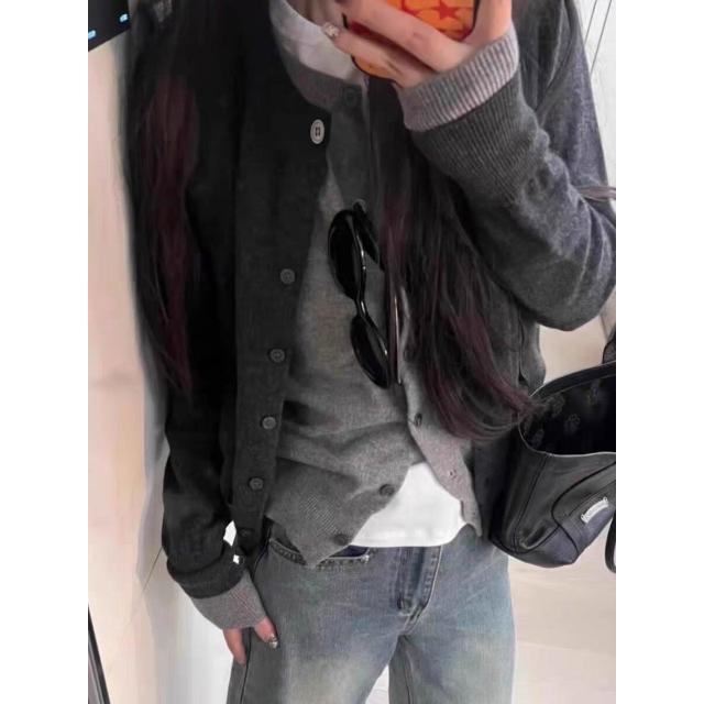 §雲溪§ 春秋新款假兩件羊毛開衫女寬松韓版疊穿百搭針織衫羊絨毛衣外套